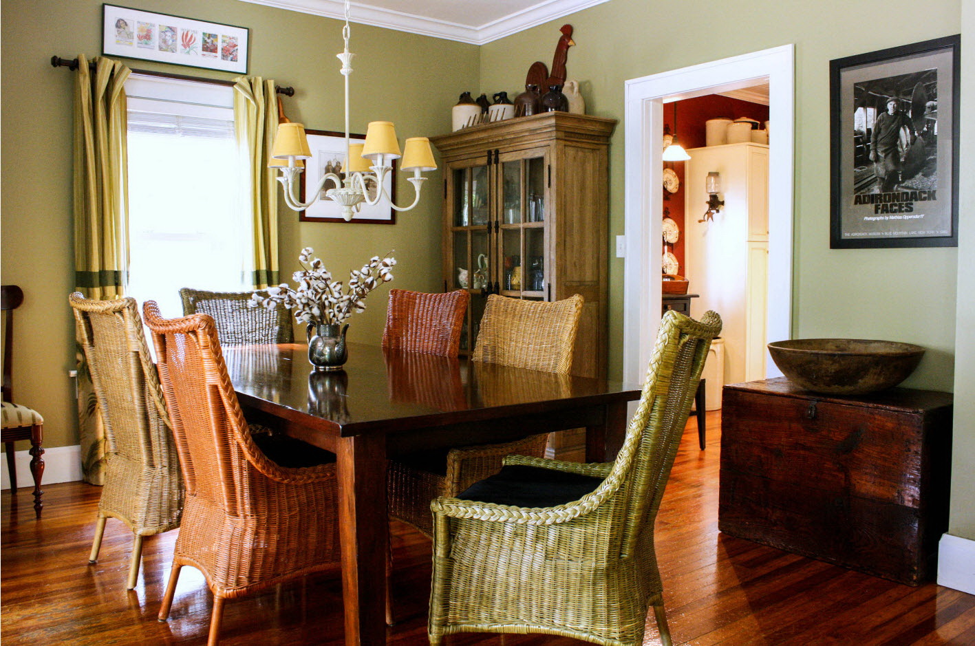 A opção tradicional da aldeia é a escolha de um conjunto para uma área de jantar (uma boa mesa oval com quatro pernas e 4-6 cadeiras) e um conjunto de cozinha das mesmas cores. Preferência é dada à madeira cinza-marrom ou madeira marrom (carvalho, nogueira, pinheiro, cereja).