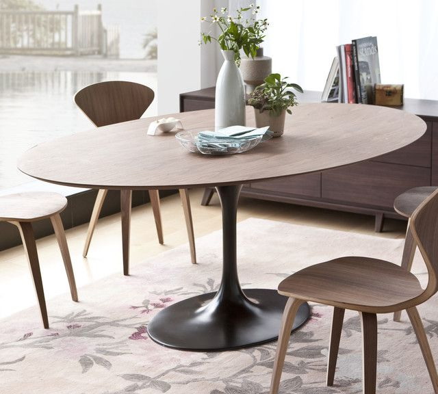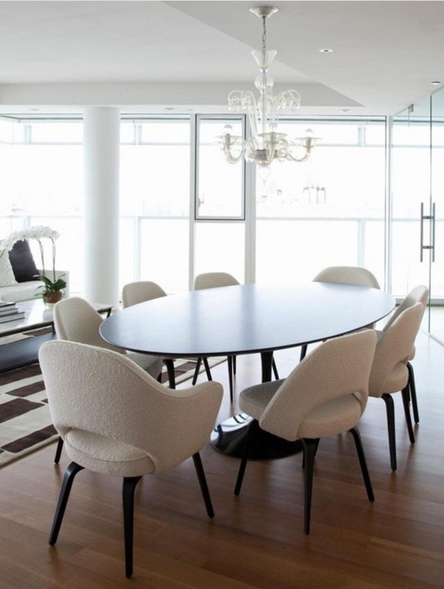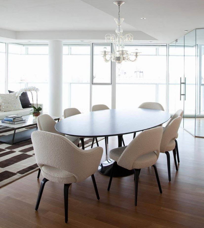 Uma combinação harmoniosa de designs de diferentes estilos e tendências modernas ajuda a criar interiores únicos. A mesa oval pode ser chamada universal. Graças a diferentes materiais, tonalidades, desenhos, é fácil escolher um produto no interior de qualquer estilo.