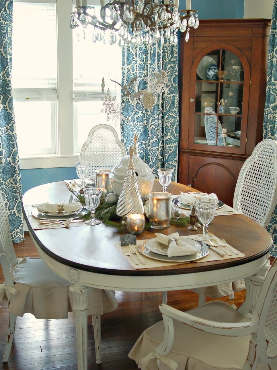 - Toalhas de mesa capaz de complementar o estilo original da sala. Humor étnico destaca bege, pálidoverde telas. Têxteis azulAs flores azuis se encaixam elegantemente no estilo clássico;