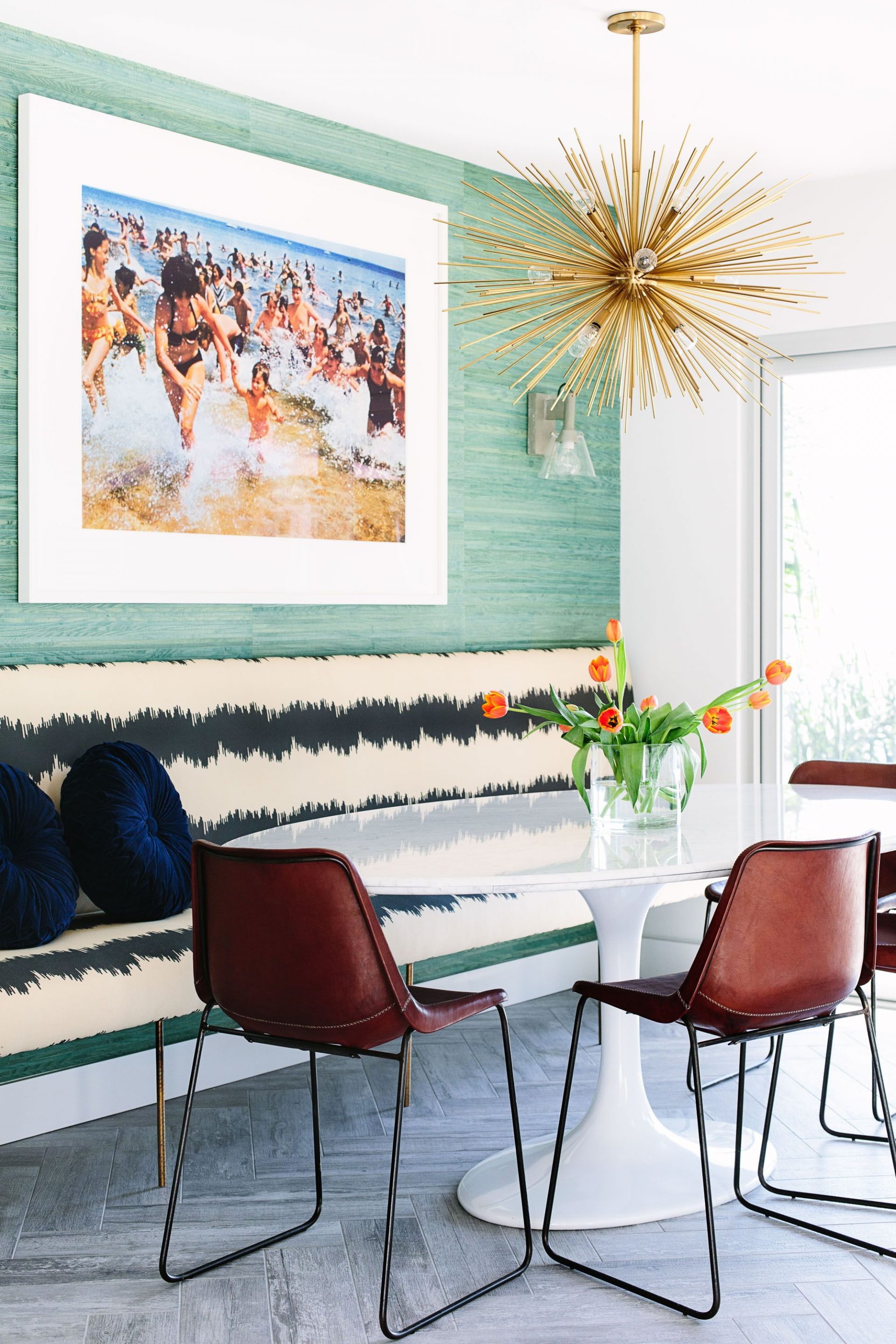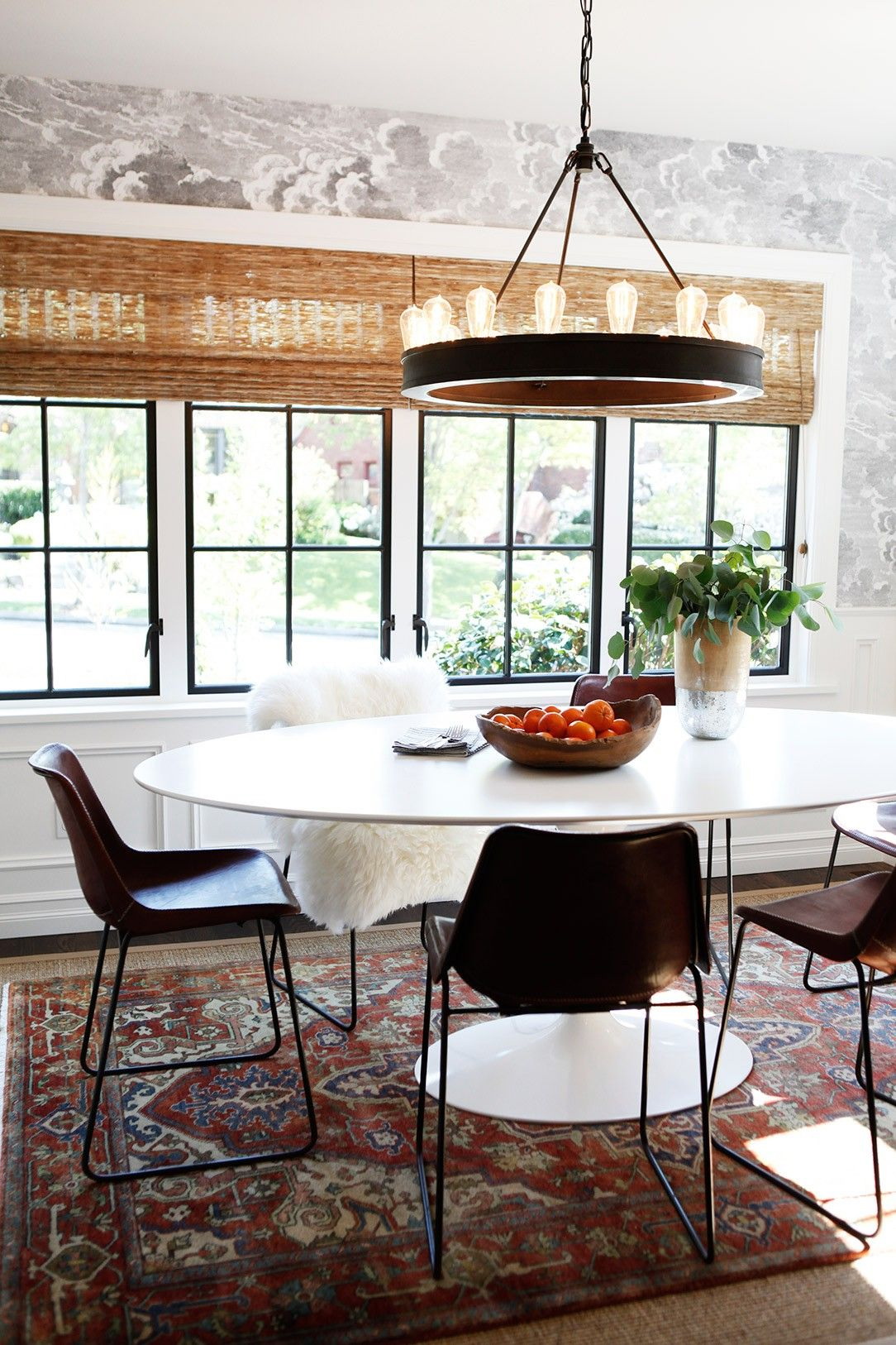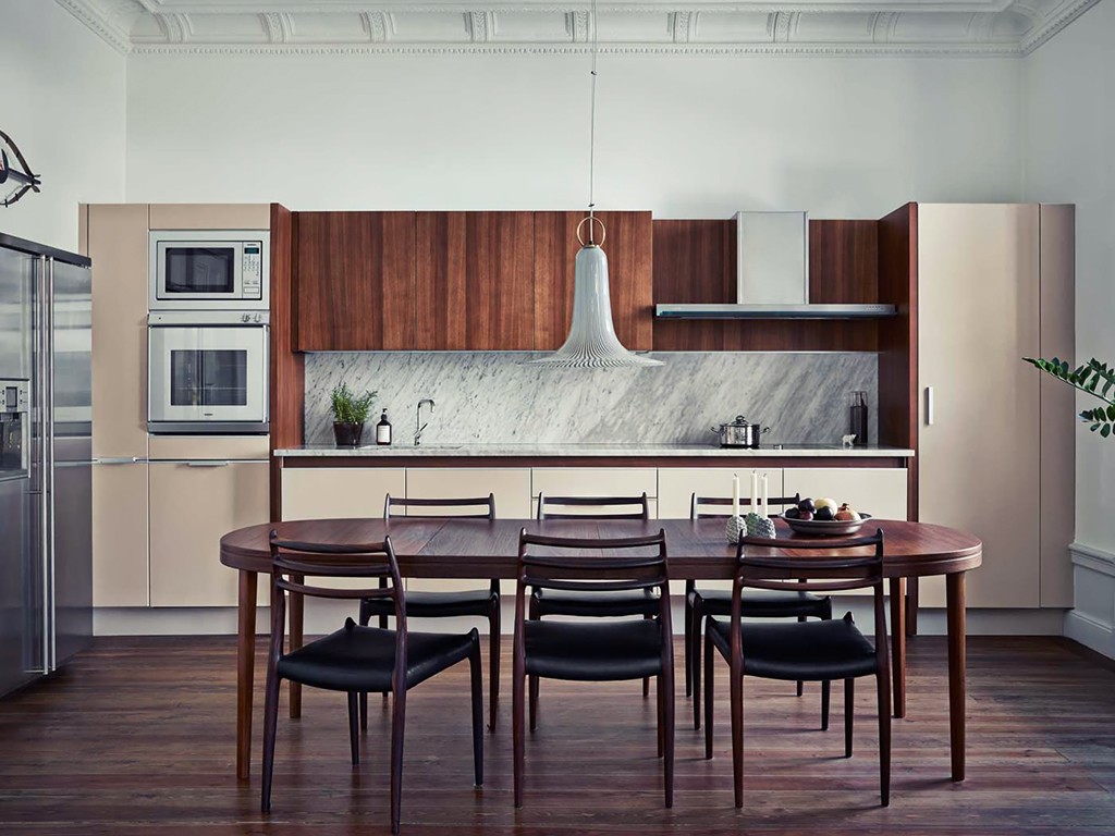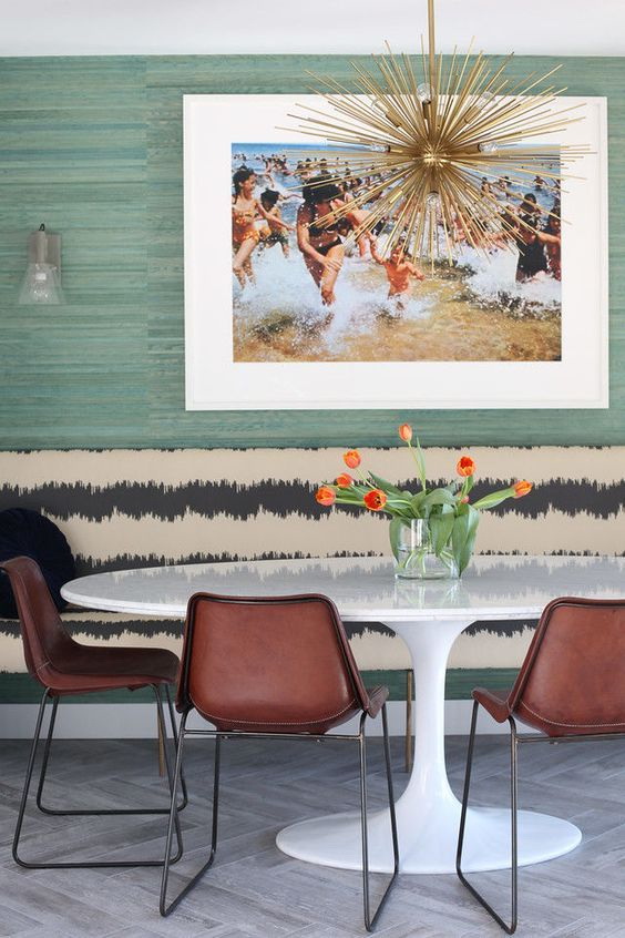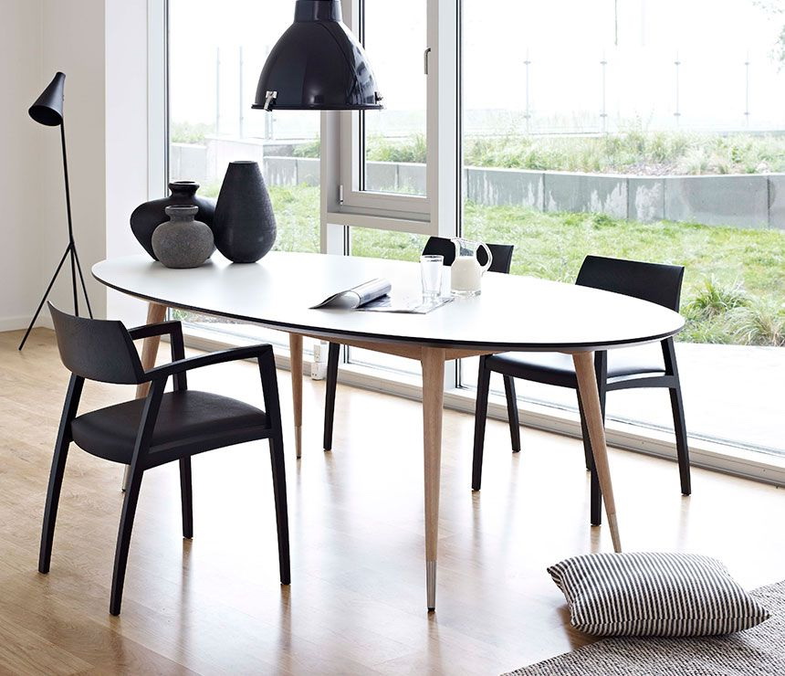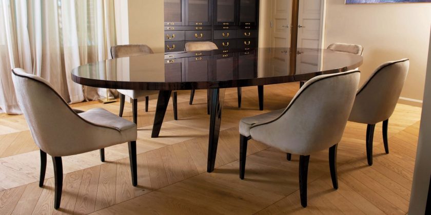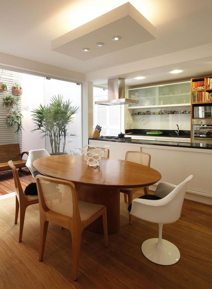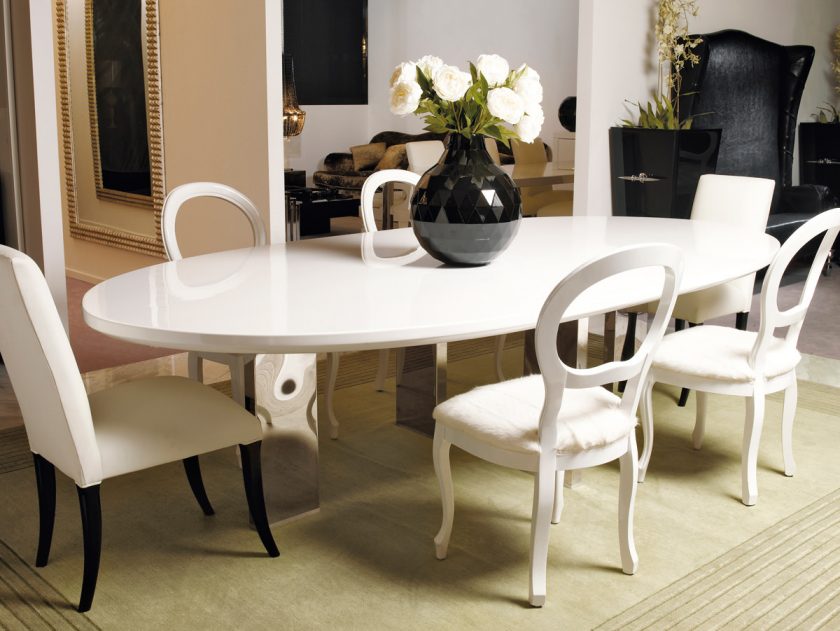 Recomenda-se escolher uma mesa oval que “rime” mesmo com algum elemento do interior: