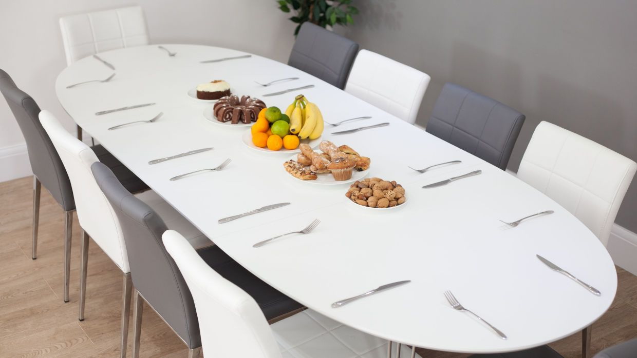 - modelo com oval bancada 109 cm de largura e 180-240 cm de comprimento serão convenientes para uma família de 10 pessoas;
