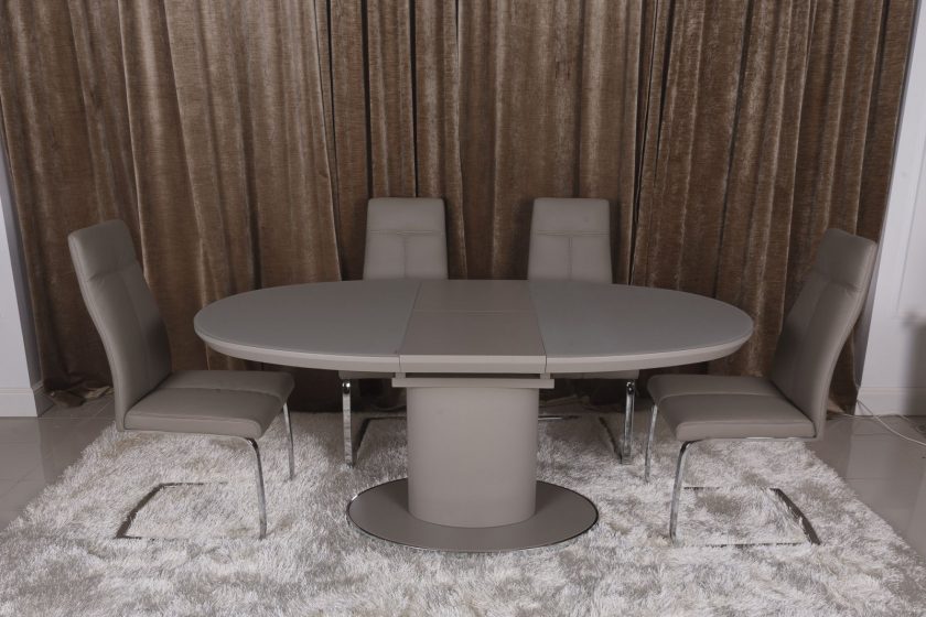 - graças a mecanismos especiais, você pode organizar rapidamente uma confortável sala de jantar. zona. E também devolver imediatamente a mesa oval à sua forma original - não é gasto mais de 1 minuto na transformação. Naturalmente, se o produto tiver grandes parâmetros, sua transformação terá que ser complicada;