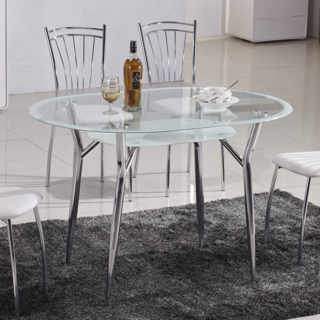 Apenas a limpeza regular da mesa oval manterá sua aparência bem cuidada. Porque na superfície do vidro há sempre vestígios de mãos, gotas de água, pratos molhados. Embora você possa escolher um vidro fosco, em que tal poluição será invisível.