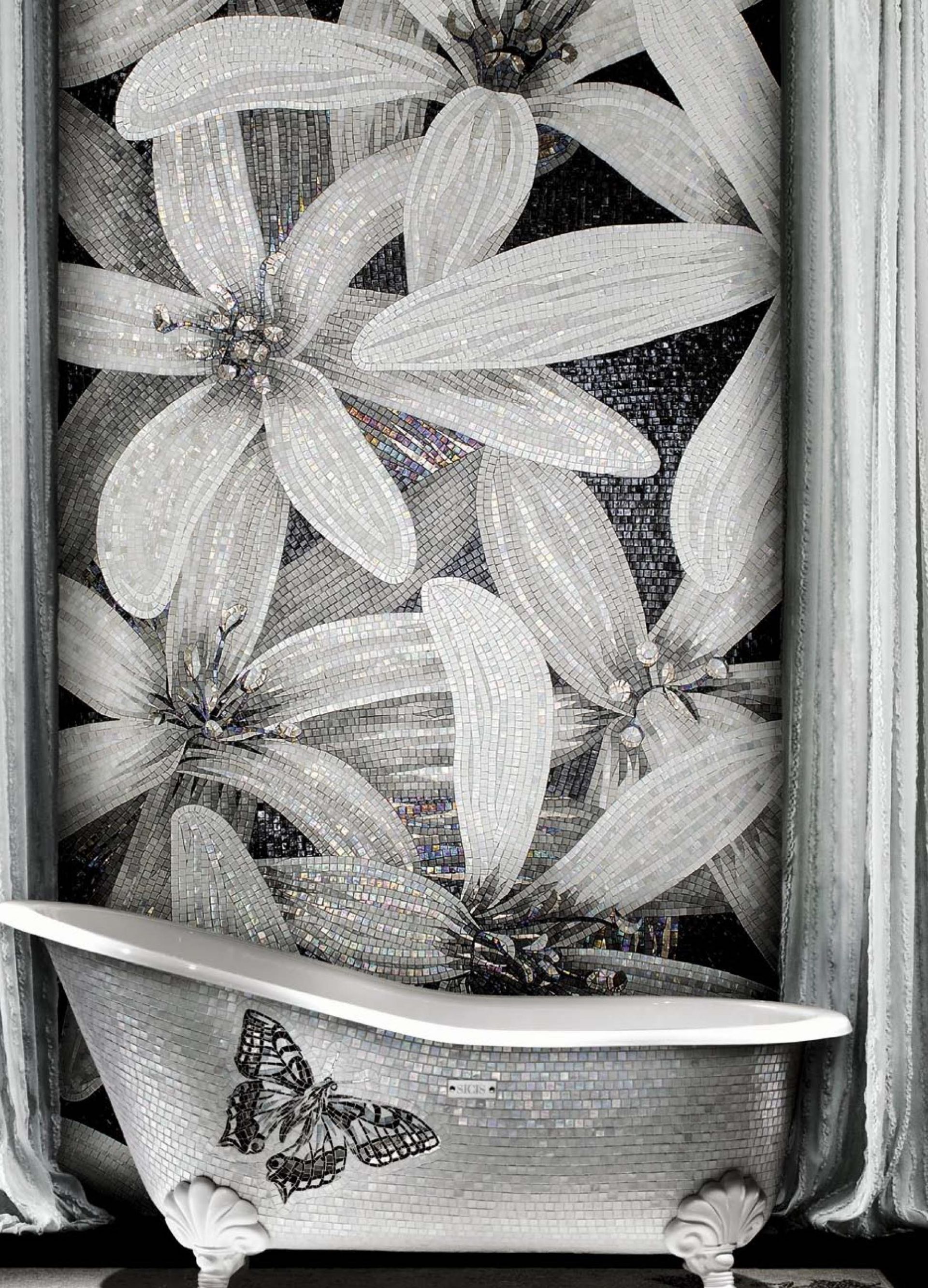 - O acabamento smalt é durável e confiável. A tecnologia de produção de elementos smalt torna possível a instalação de uma iluminação interna espetacular durante a colagem.
