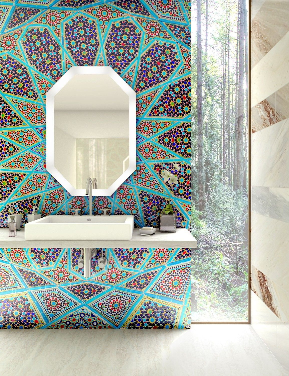 - padrões gráficos e mosaico adequados para banheiro étnico;