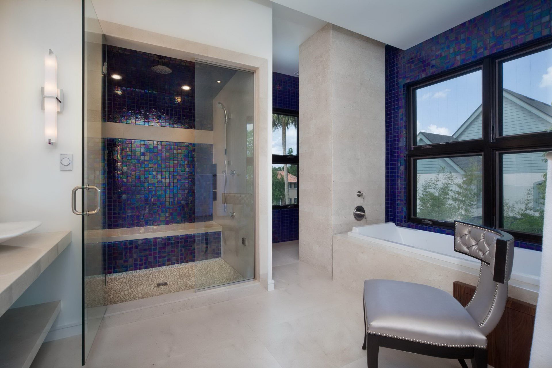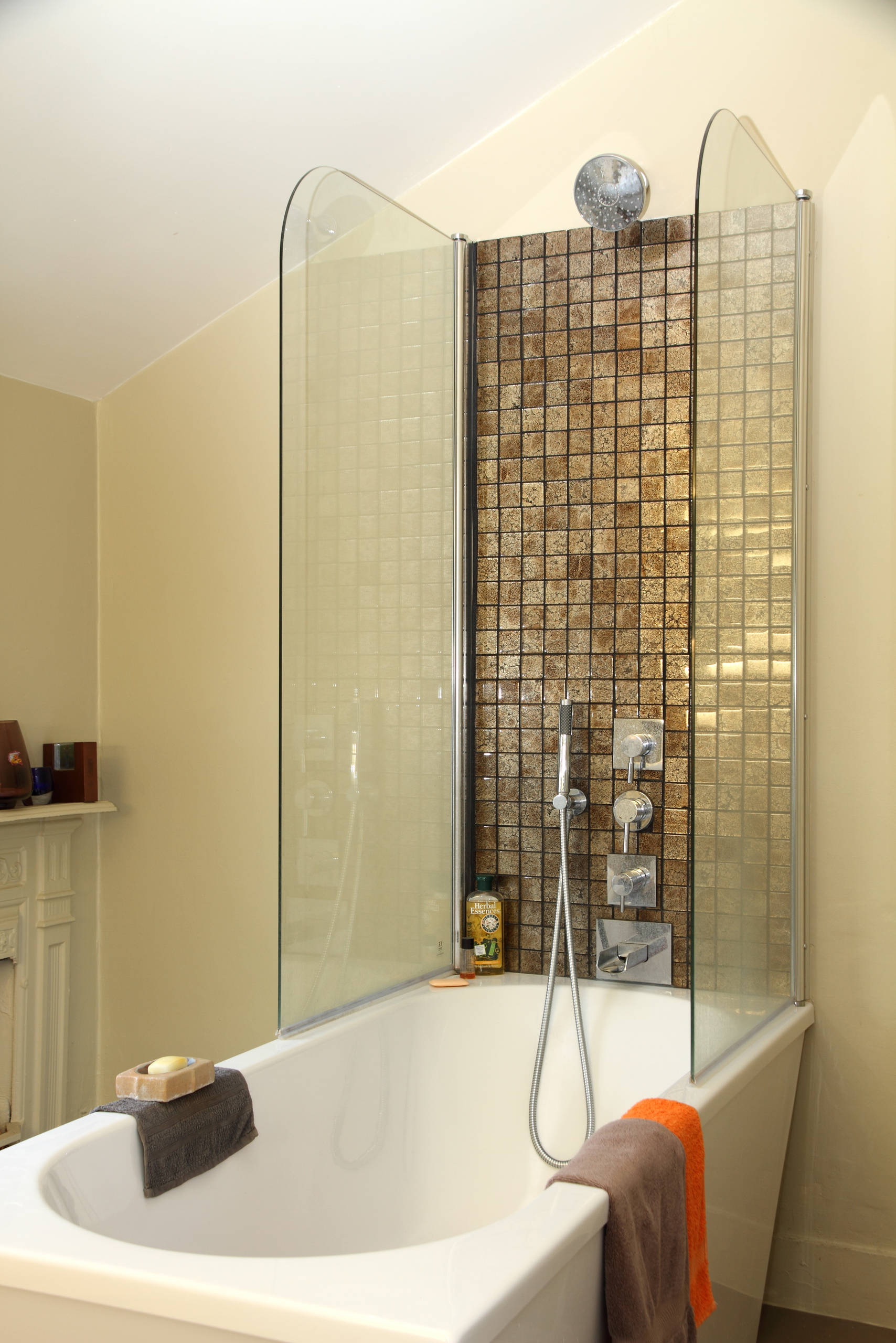 A imagem de vidro no banheiro tem vários recursos: