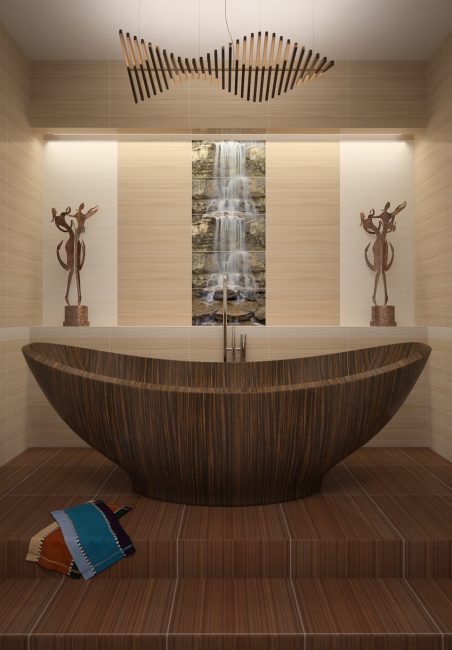 O banheiro é o lugar onde você quer se sentir confortável e privado. Onde no final do dia de trabalho você quer colocar seus pensamentos em ordem, relaxe e relaxe. E isso pode contribuir não só para um banho quente ou banho, mas também uma decoração interior apropriada.