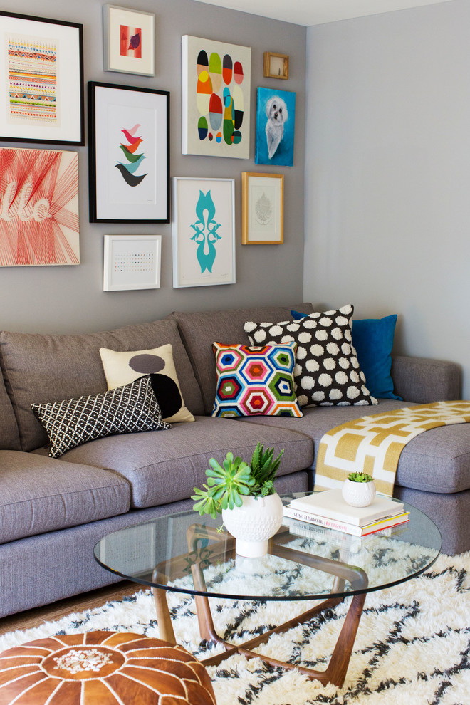 - Ao usar vários painéis na mesma parede, é necessário que eles estejam perfeitamente combinados entre si, suportem um tema ou harmonizem perfeitamente a cor.