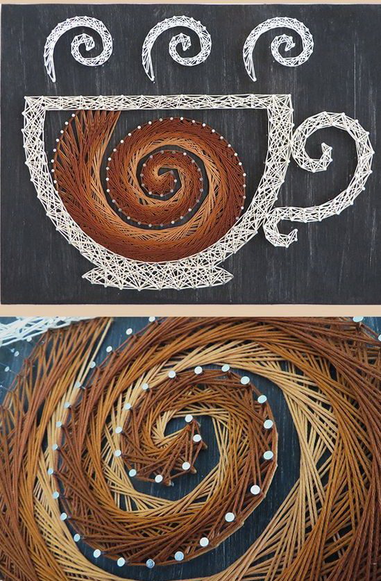 Com a ajuda de fios e pregos comuns, você pode fazer um painel que os fará admirar. Tais ofícios pertencem à arte da arte das cordas e são populares em todo o mundo. E na venda eles são de alto valor.