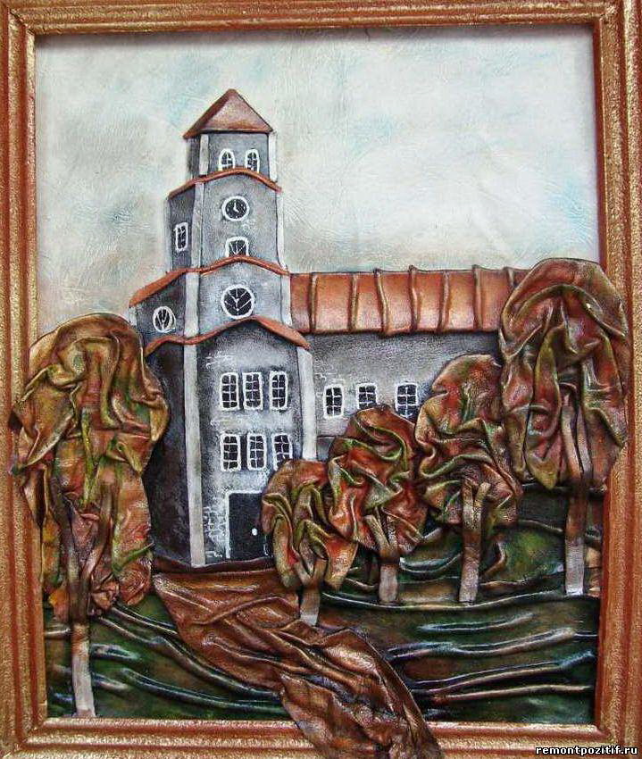 - Por si só, o material não é brilhante, então você pode decorá-lo com uma moldura brilhante e pintar. Neste último caso, não exagere para que o material não se assemelhe a argila.