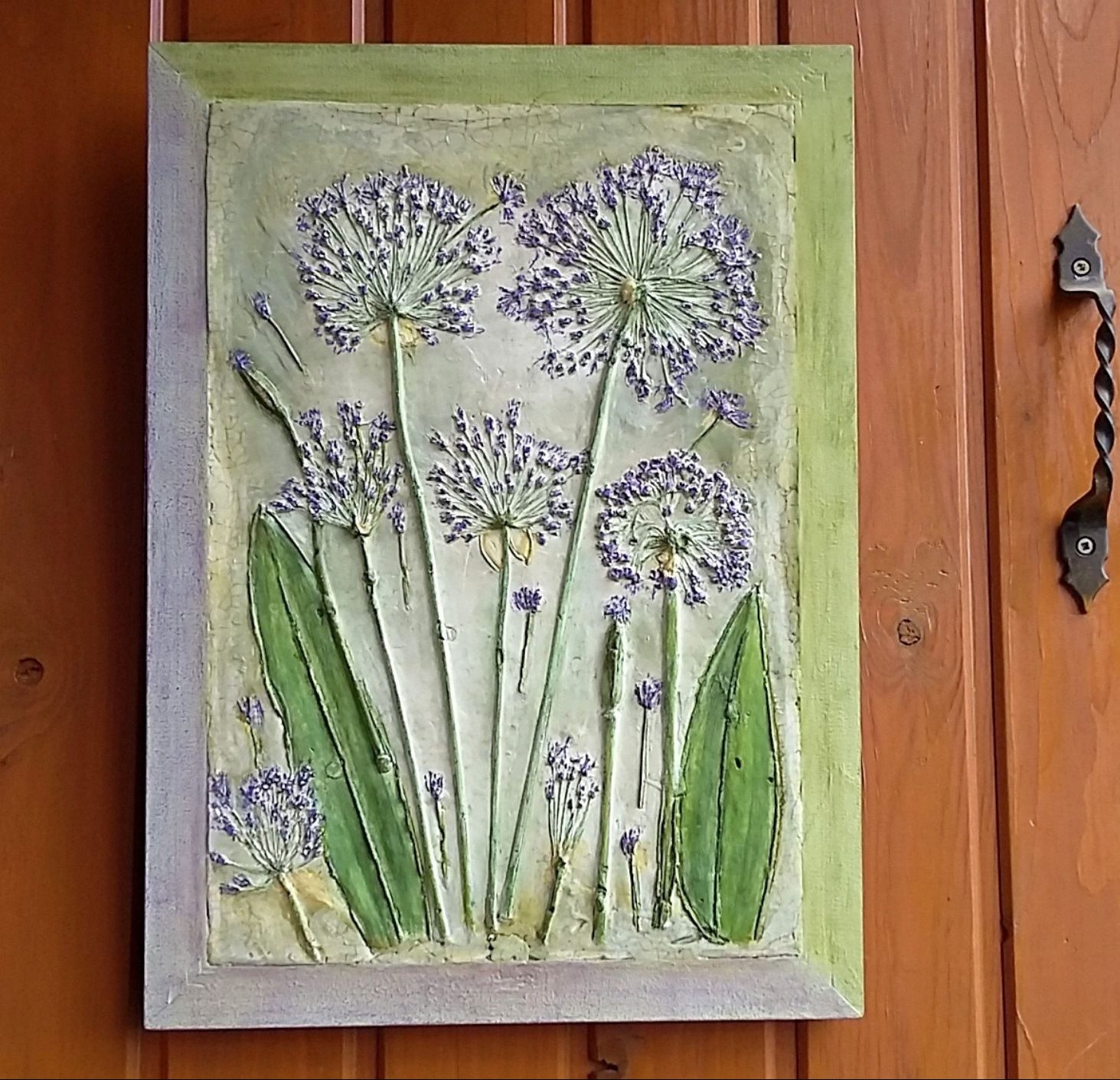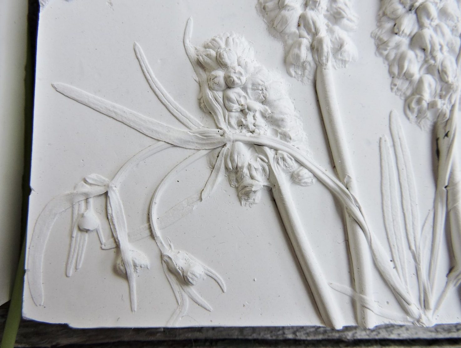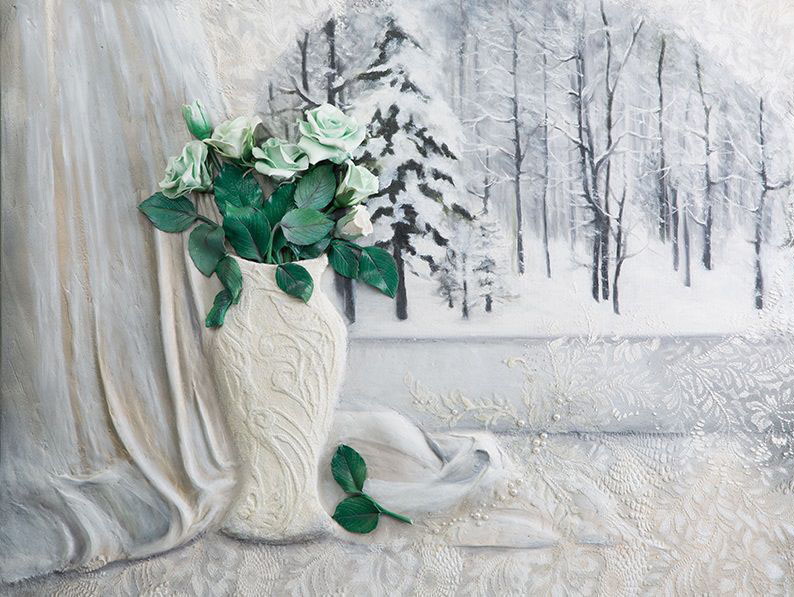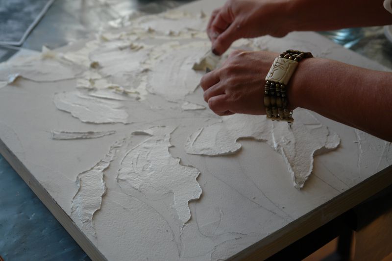 - É necessário aplicar um pouco de gesso, para que não tenha tempo para secar. Você pode fazer flores, padrões. Se você desenhar bem, você pode fazer composições difíceis.