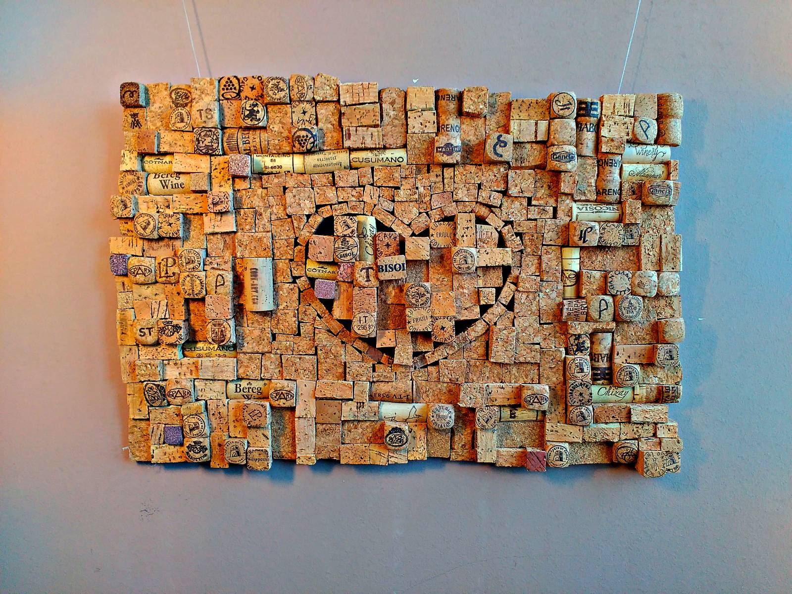 A única dificuldade em criar esse painel é encontrar um número suficiente de engarrafamentos. Se houver rolhas de vinho em casa, criar um painel original não será difícil. Este material é fácil de processar, fácil e conveniente.