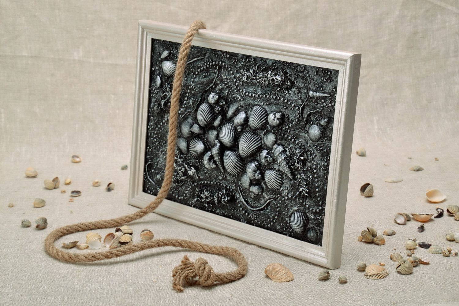 - Esta pode ser uma flor disposta de conchas ou um arranjo caótico. Muito depende de onde o painel será colocado. Precisa resistir ao tema do mar ou criar um quadro geral.