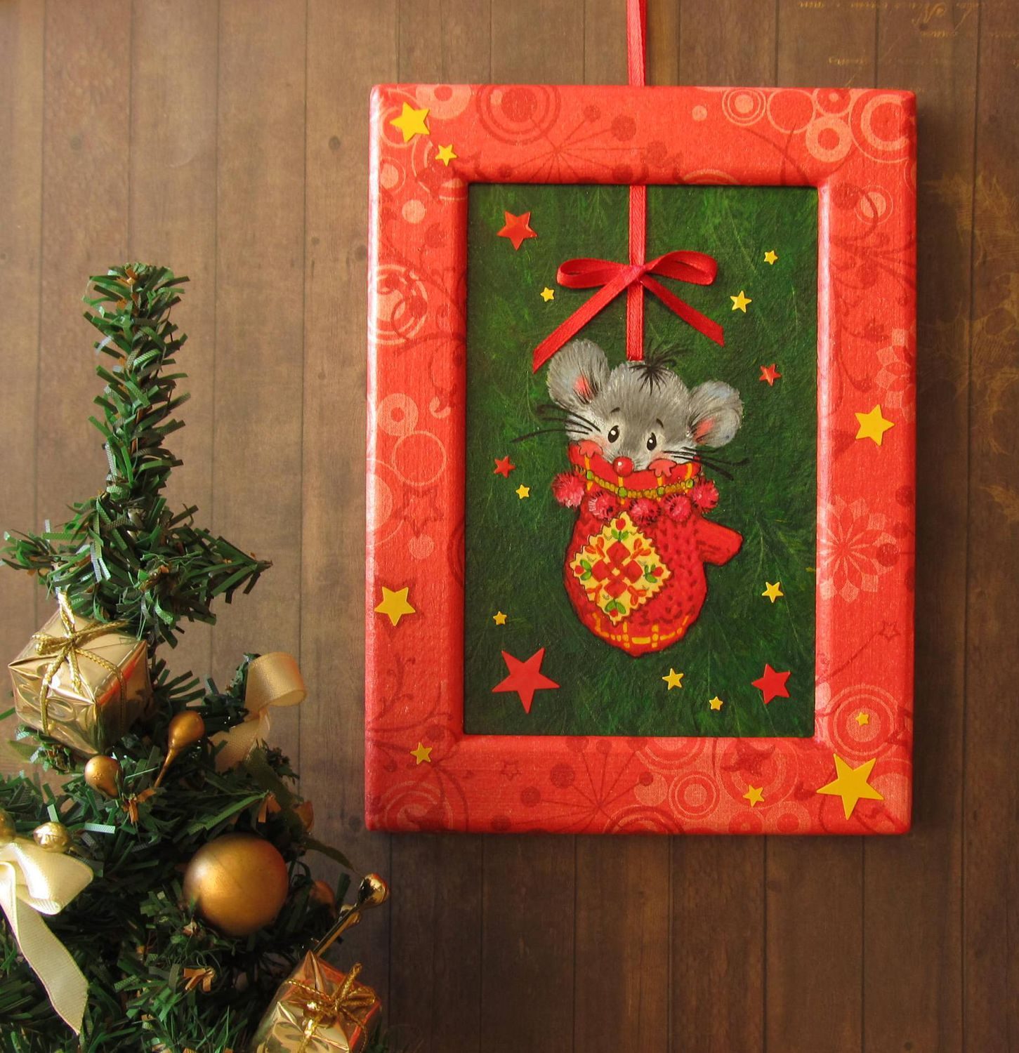 Esta opção pode ser considerada uma atualização de coisas antigas. Neste caso, a base é tomada em qualquer tela. Pintura antiga, placas de madeira, elementos de ferro ou vidro. Com a ajuda de tintas, miçangas, fios e outros materiais, a base é decorada.