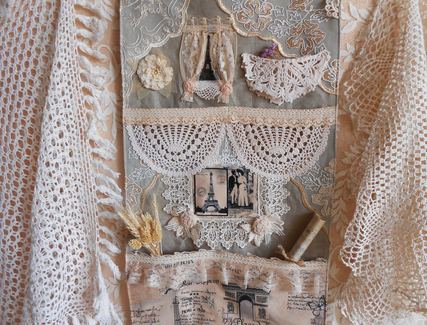Como um quadro, você pode usar projetado para fotos ou fotos. Você pode fazer isso sozinho, se houver tiras finas. Para o fundo mais utilizado tecido, que é coberto com a base. Como a boneca tem um certo peso, a base deve ser confiável - madeira ou compensado.