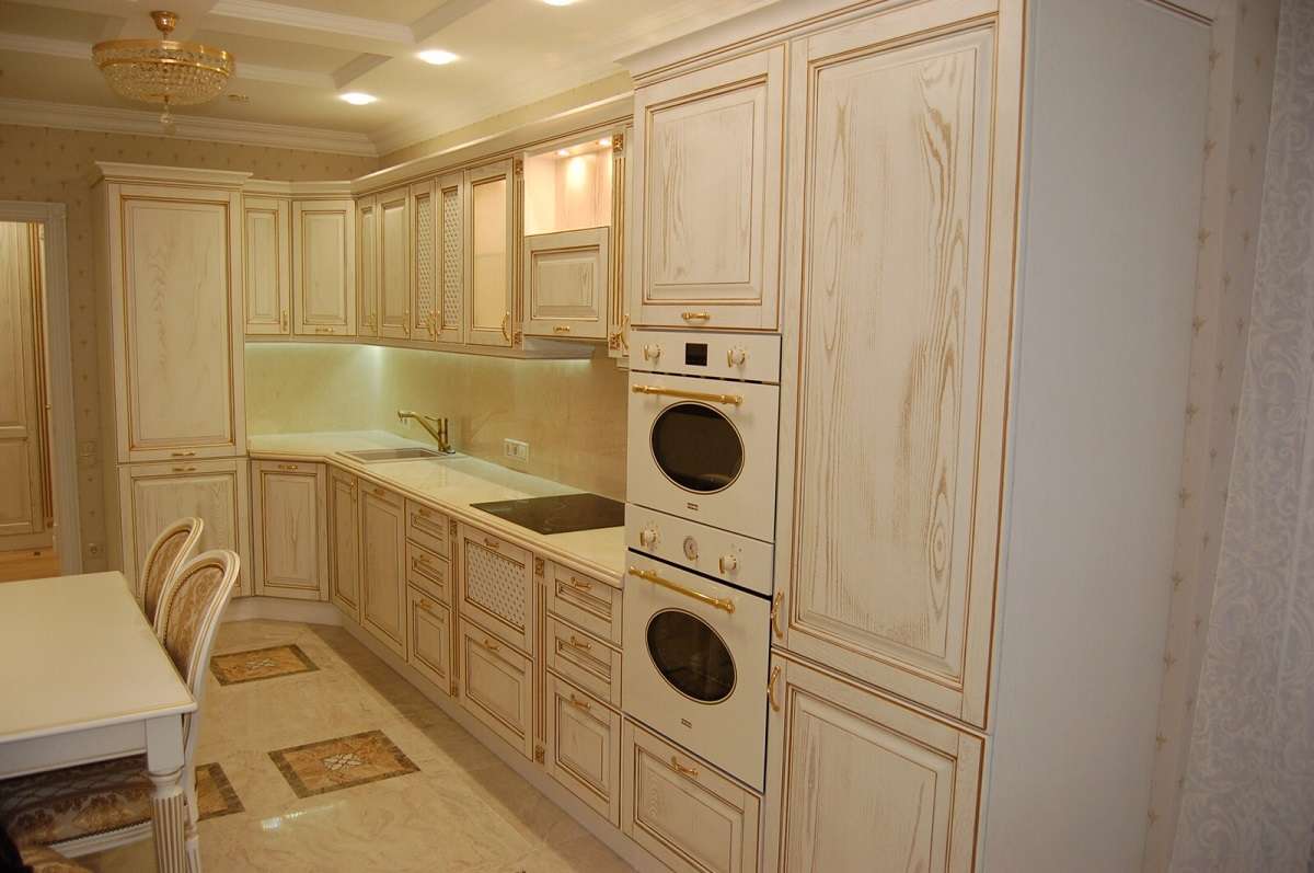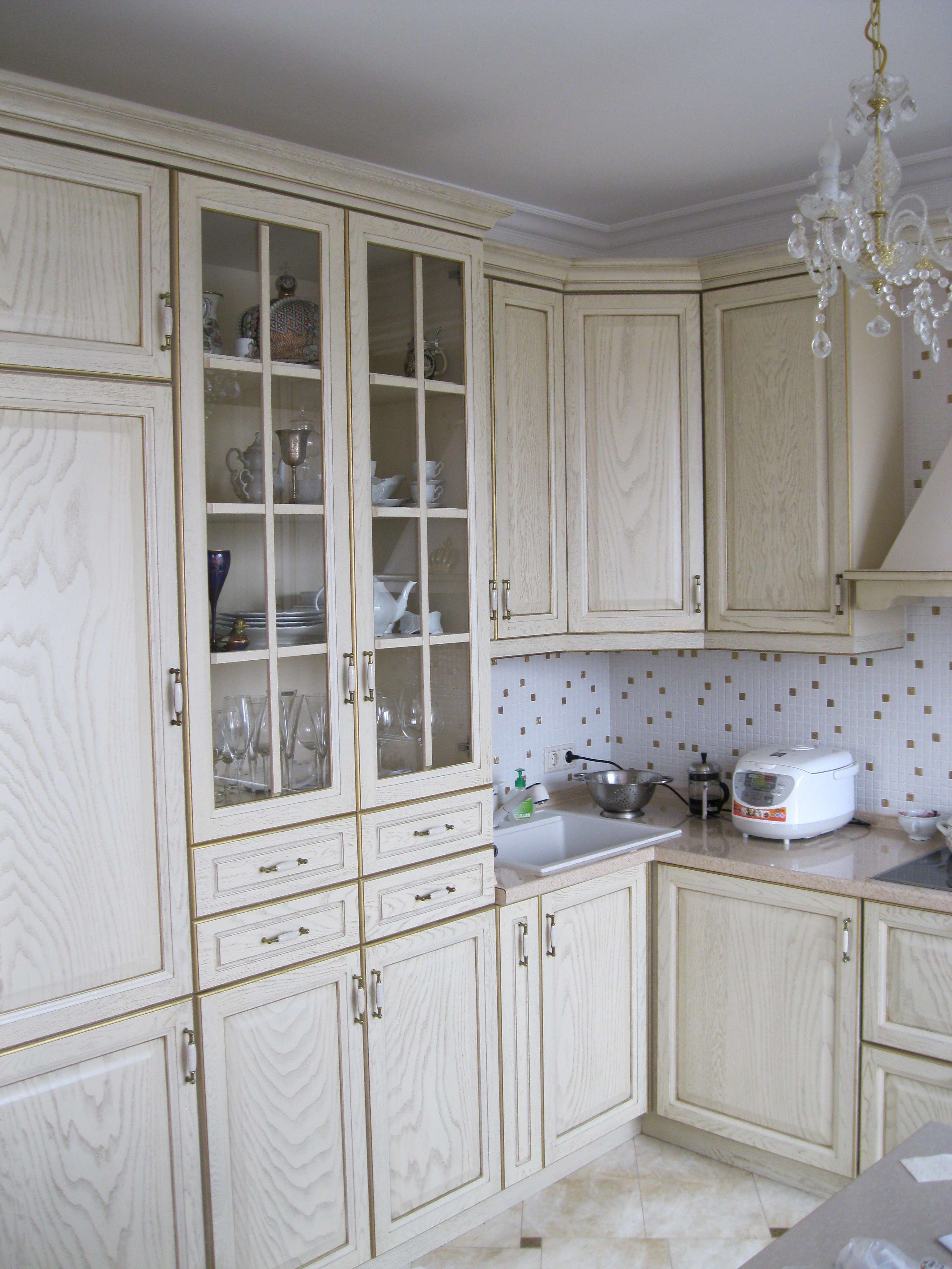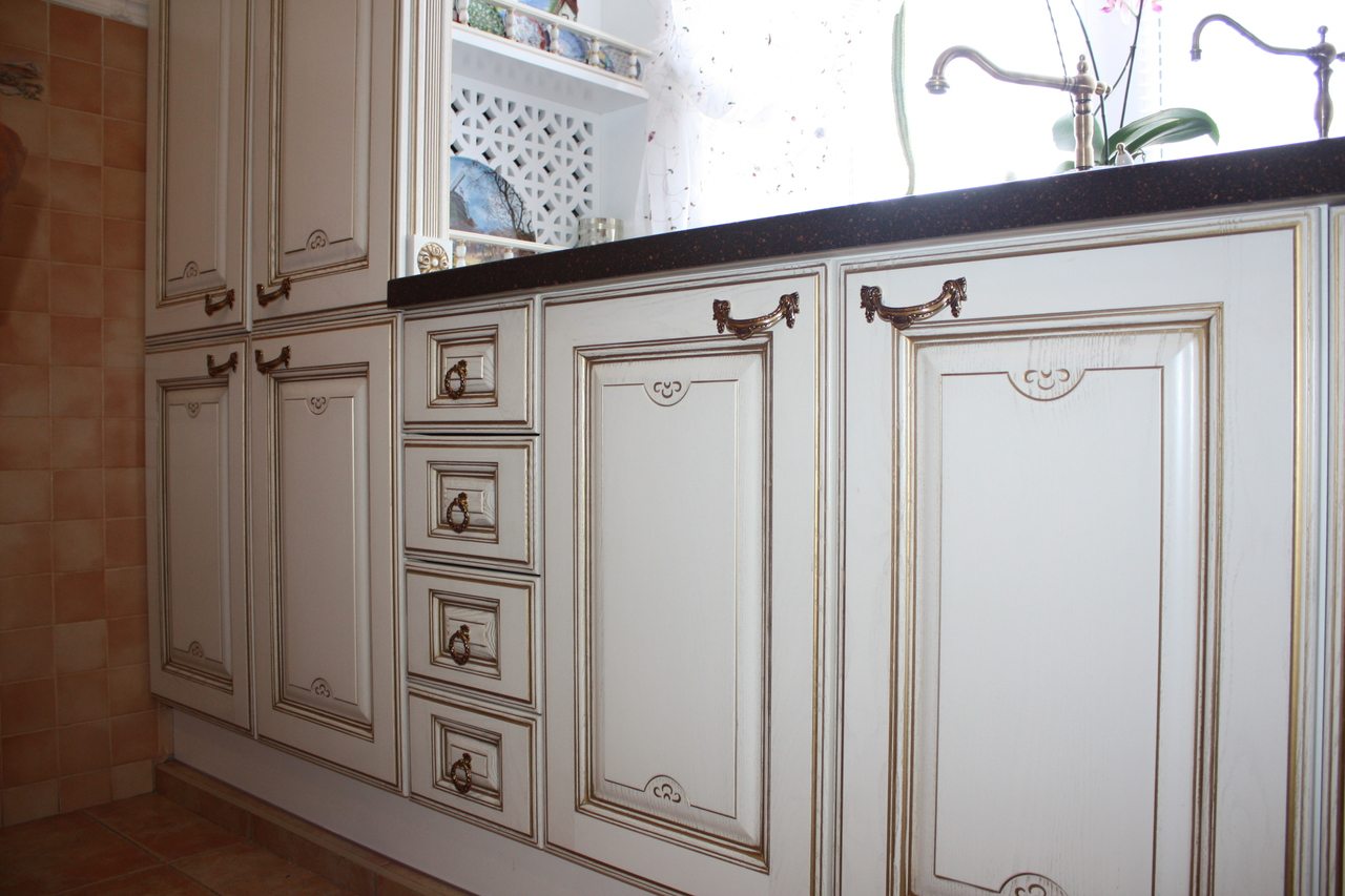 - Armários de madeira. Madeira sólida e resistente pode ser muito mais bonita do que um aglomerado perfeitamente feito.