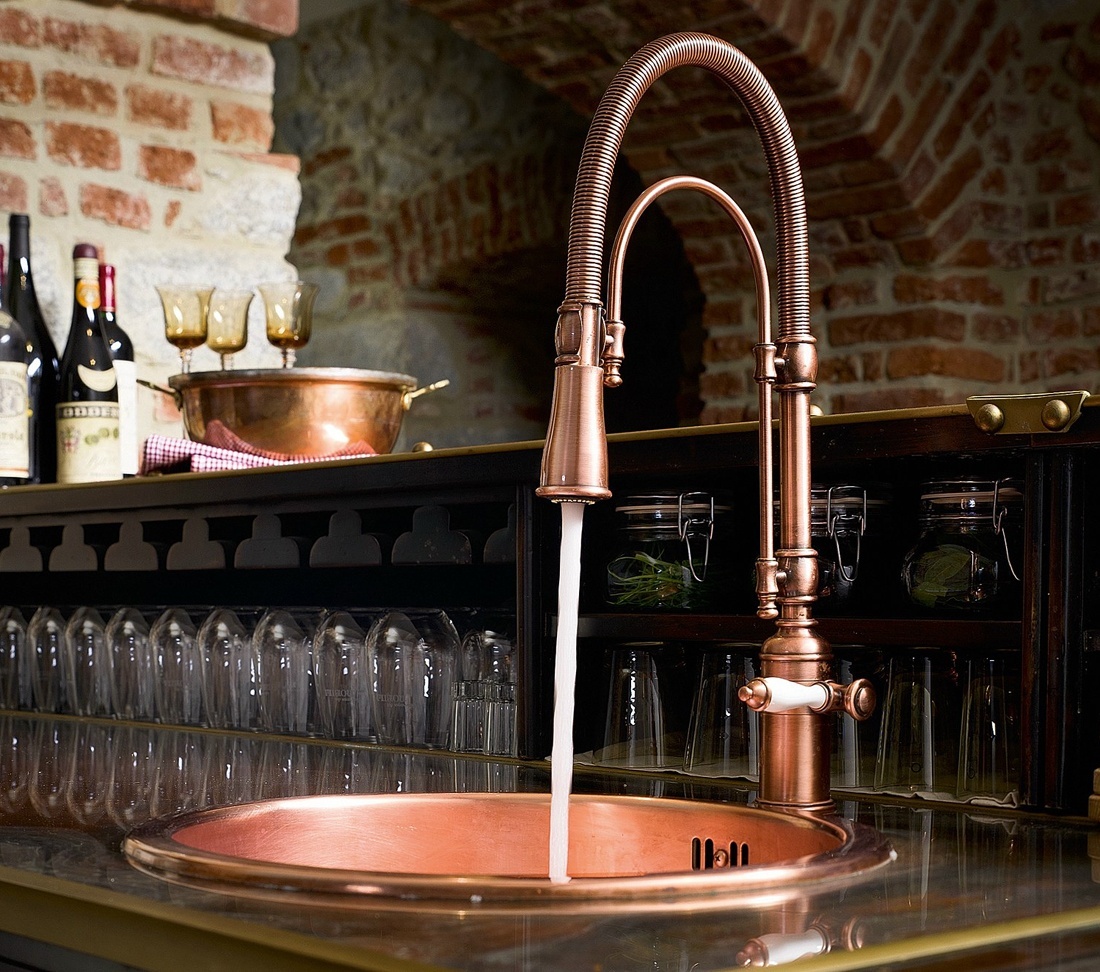 As propriedades antimicrobianas do cobre também o tornam uma excelente escolha de material para conchas e guindastes. Como pias e torneiras de cozinha entram em contato com bactérias constantemente, a escolha de um material natural é uma ótima maneira de evitar doenças transmitidas por alimentos.