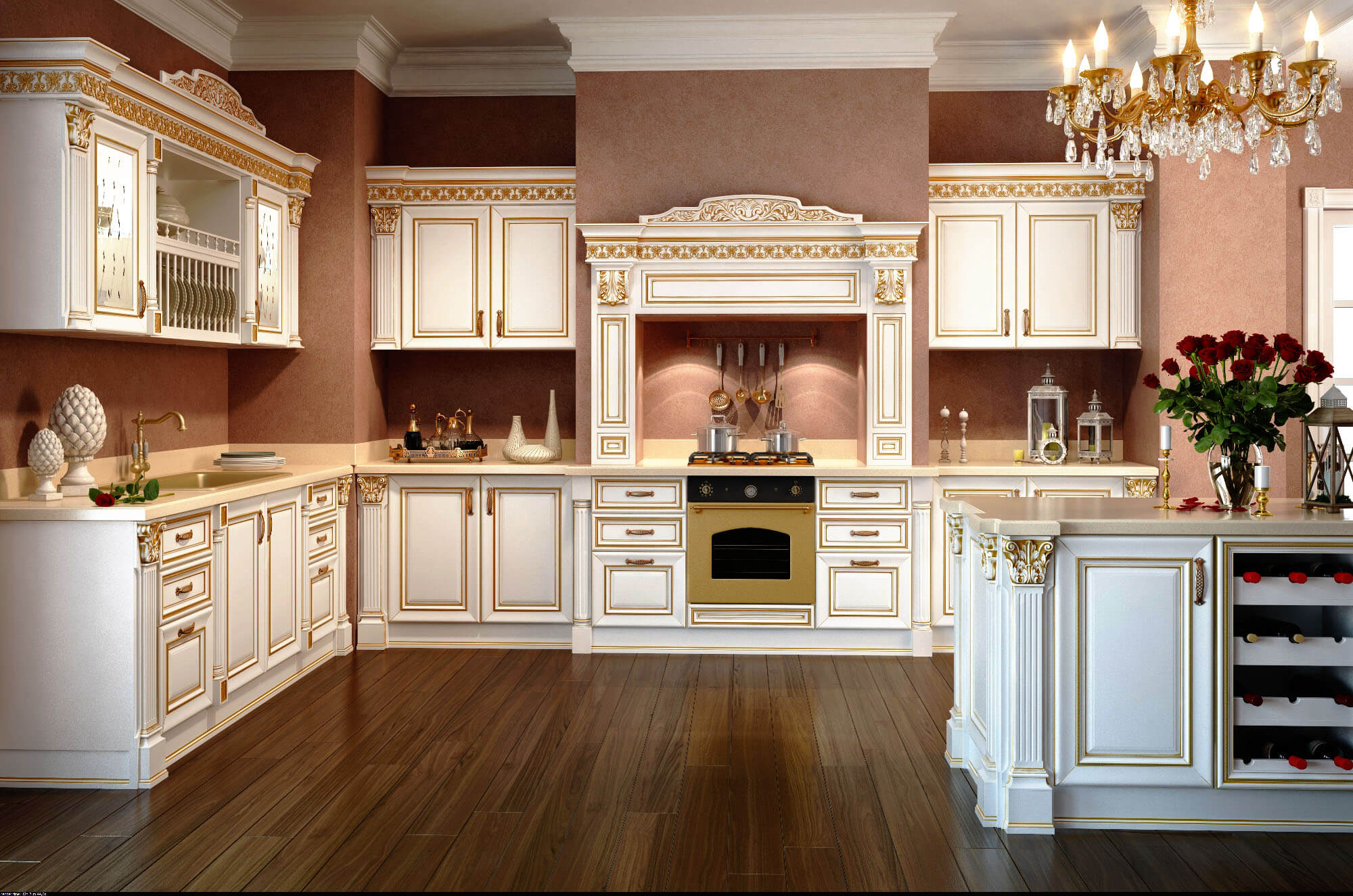 Se você gosta da aparência quente das cozinhas, então você vai se adequar a cozinha com elementos de cobre, que têm tons de luz a média castanholaranja, vermelho e ouro. Você pode admirar como o cobre eleva o espaço a um nível totalmente novo.