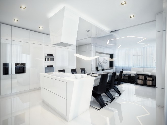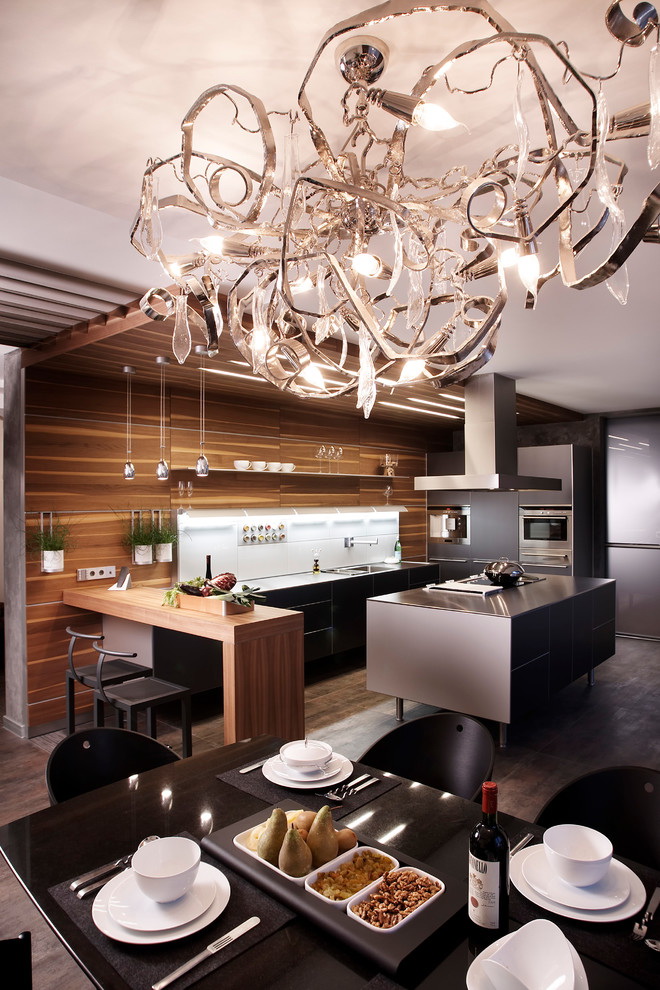 O estilo techno é outro foco de design, onde as mais recentes invenções de eletrodomésticos e iluminação devem ser aplicadas.
