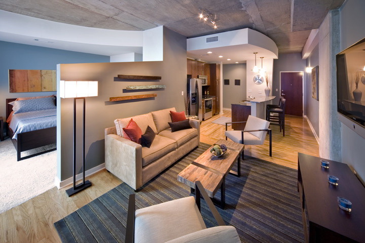 Loft é uma descoberta única para o apartamento onde os inquilinos decidiram abandonar as divisórias padrão e transformar o apartamento em um estúdio. Com o estilo loft, qualquer estúdio irá brincar com novas cores e transformar o conceito de apartamentos padrão sem partições.