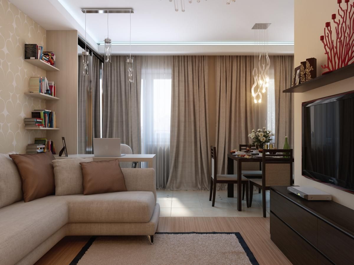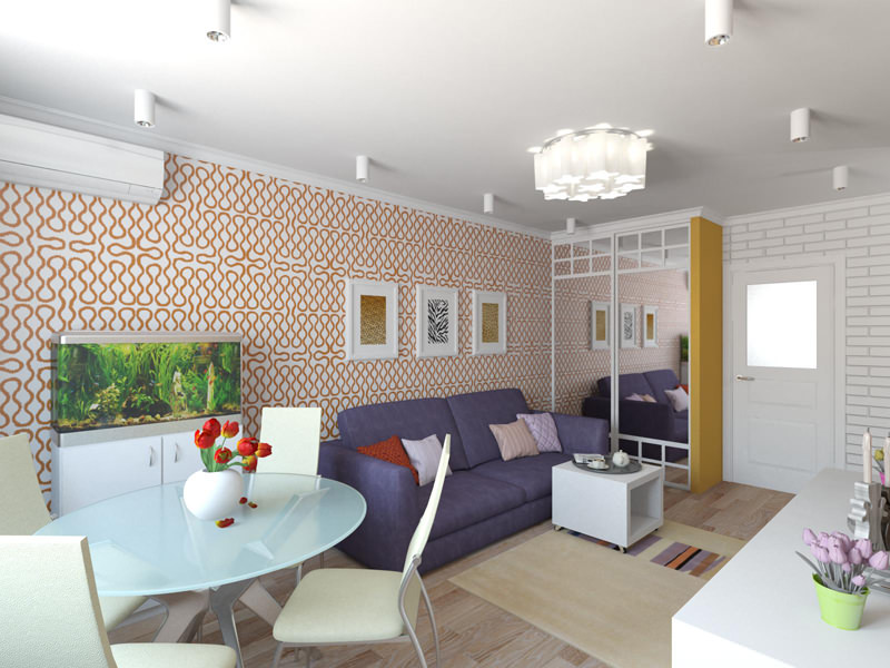 O que pode ser mudado em tal apartamento? Aqui, a presença de conforto e comodidade é garantida, para que você possa acompanhar as tendências da moda e combinar a cozinha com a sala de estar, transformando parte do apartamento em um pequeno estúdio. Esta opção é adequada para casais sem filhos ou inquilinos solitários.