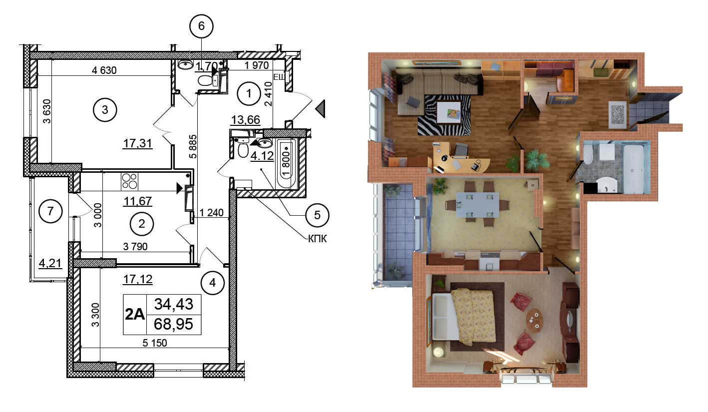 Criando um design de interiores exclusivo começa com o planejamento de apartamento de 2 quartos ou habitação de outras dimensões.