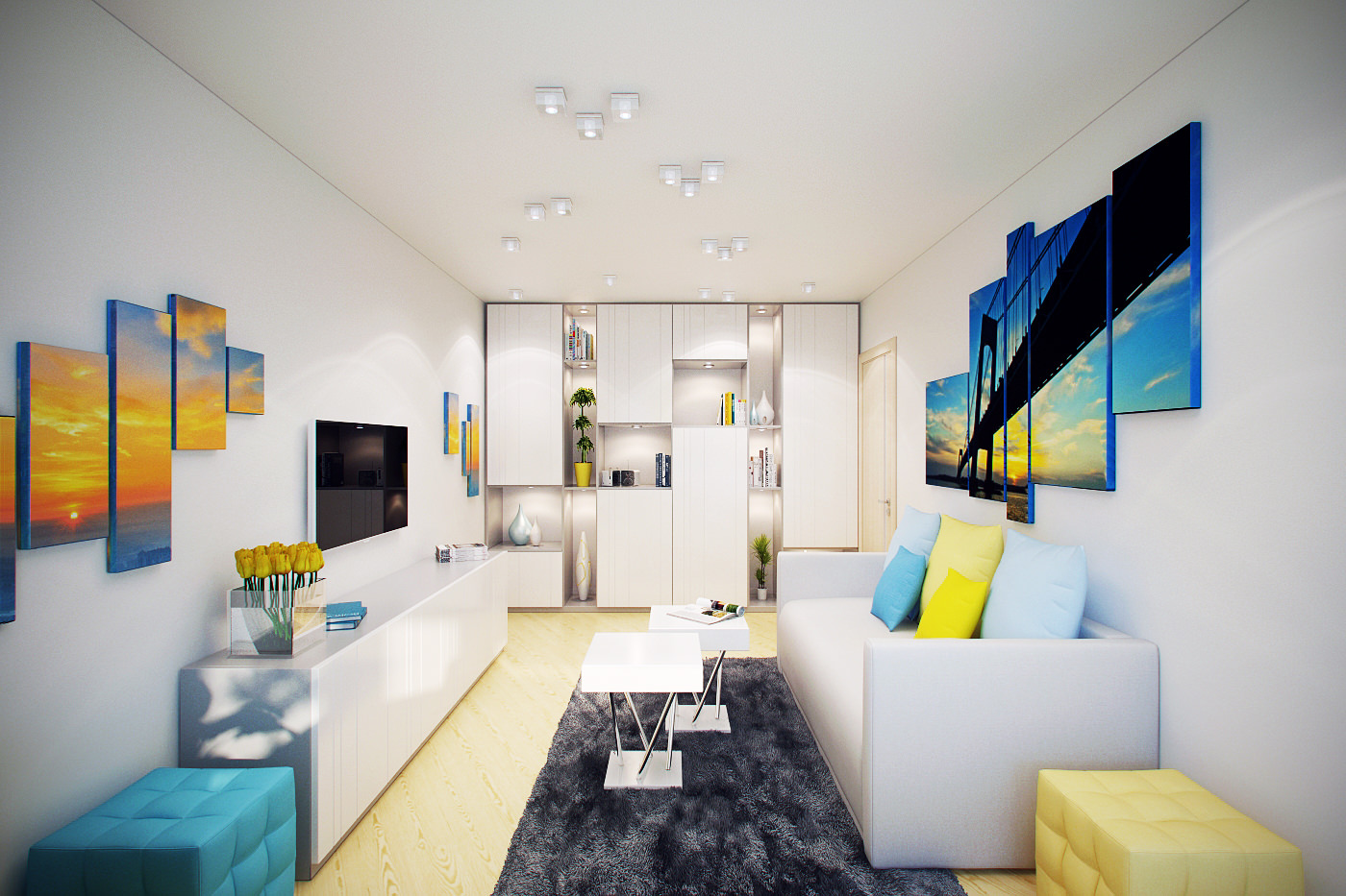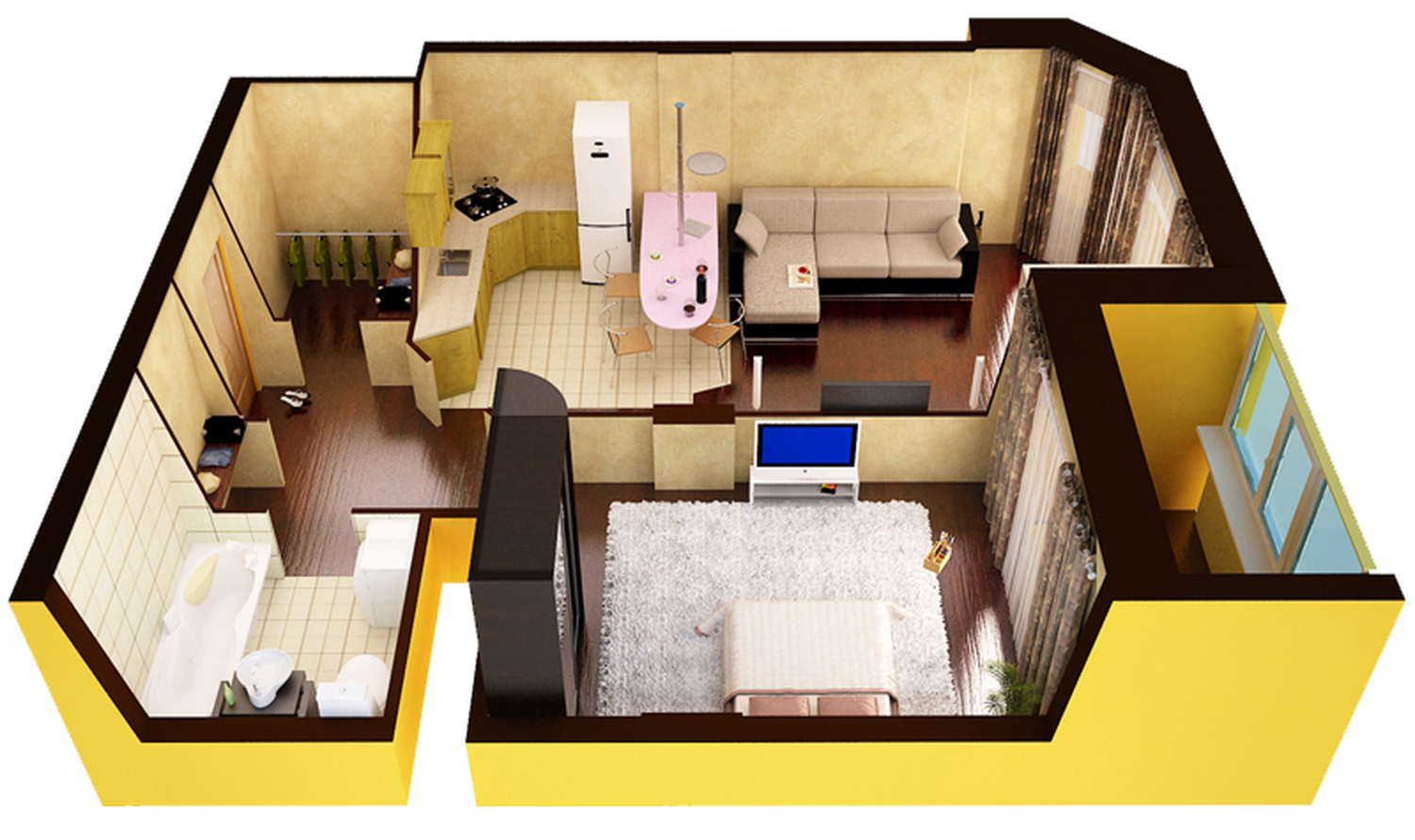 A escolha das cores para o design do novo layout é escolhida por cada proprietário ou inquilinos do apartamento individualmente. Você pode confiar em gostos pessoais ou seguir o estilo escolhido. Salas pequenas ajudará a aumentar visualmente o uso de cores brilhantes na decoração. Se um pequeno apartamento é transformado em um estúdio, você pode experimentar tons escuros.