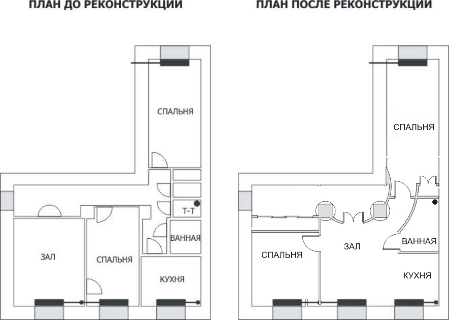 Em apartamentos padrão, o layout prevê a adição da área total do apartamento devido a armazéns, salas de serviço, loggias.Muitas vezes, os inquilinos usam essas premissas para aumentar o espaço funcional, portanto, há necessidade de redesenvolvimento de apartamentos em todos os tipos de casas, incluindo painéis ou monolíticos.