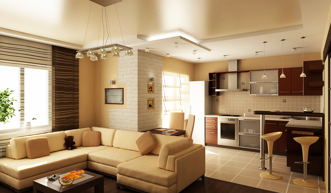 Requisitos básicos para salas de estar, cozinha, banheiro determinado pelo número de inquilinos do apartamento.Antes de iniciar todo o trabalho, você precisa finalmente escolher o estilo principal do interior, para que possíveis soluções de design possam ser incluídas no projeto no início.