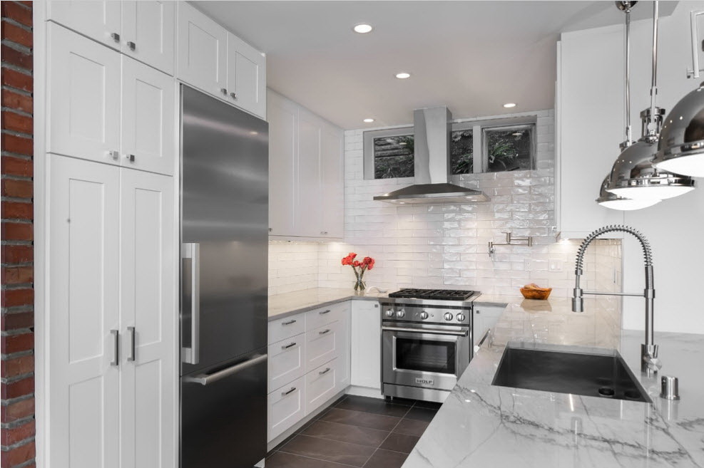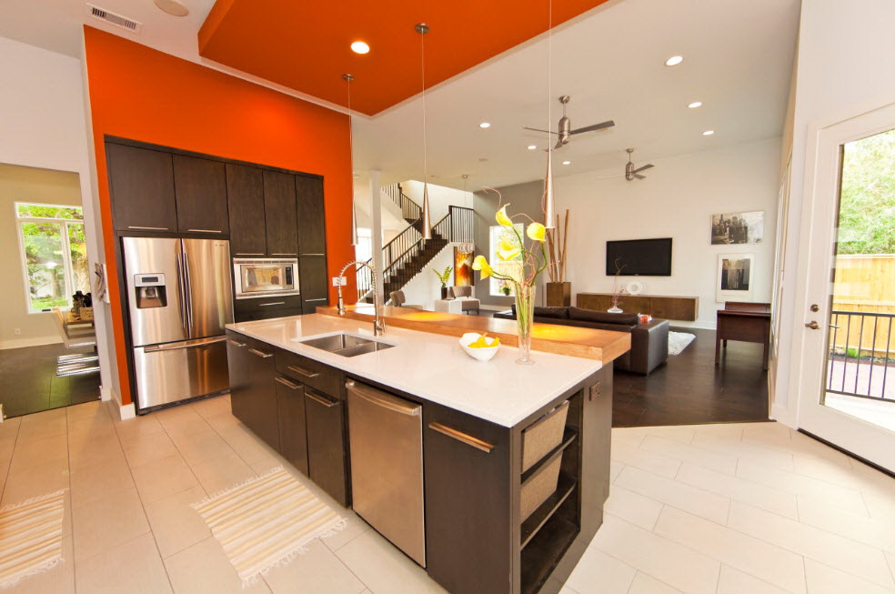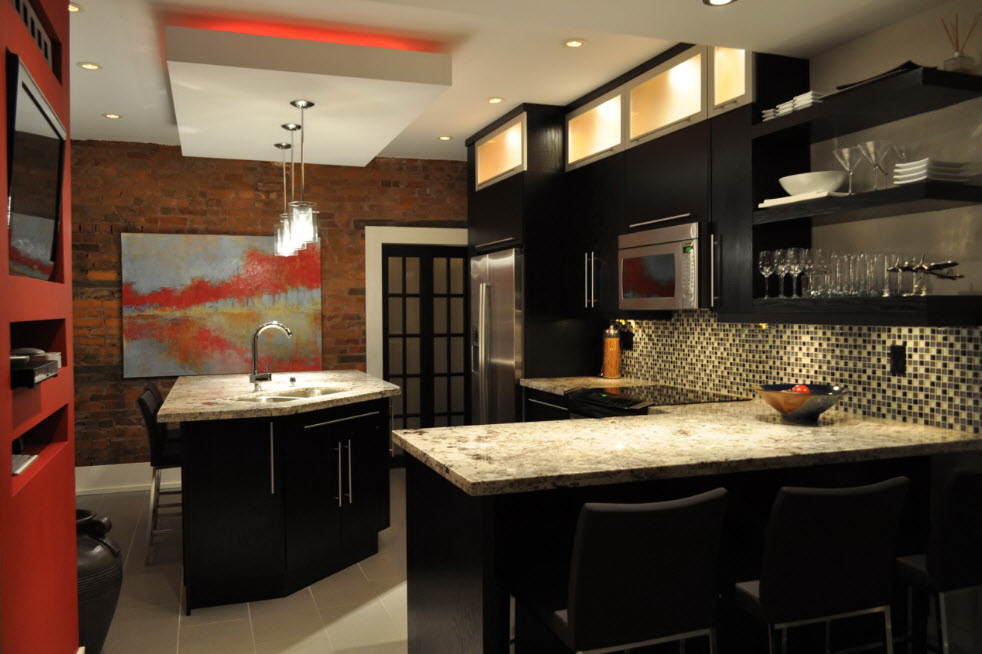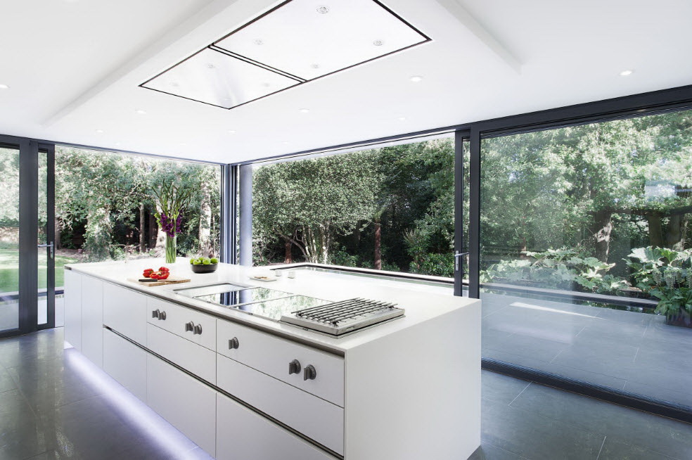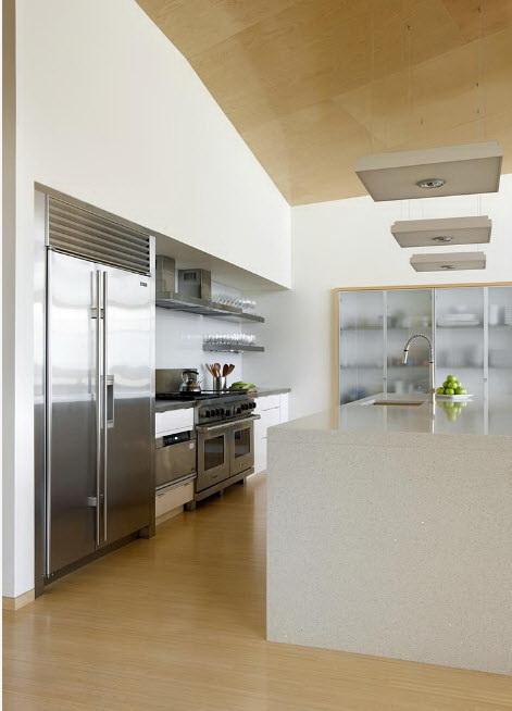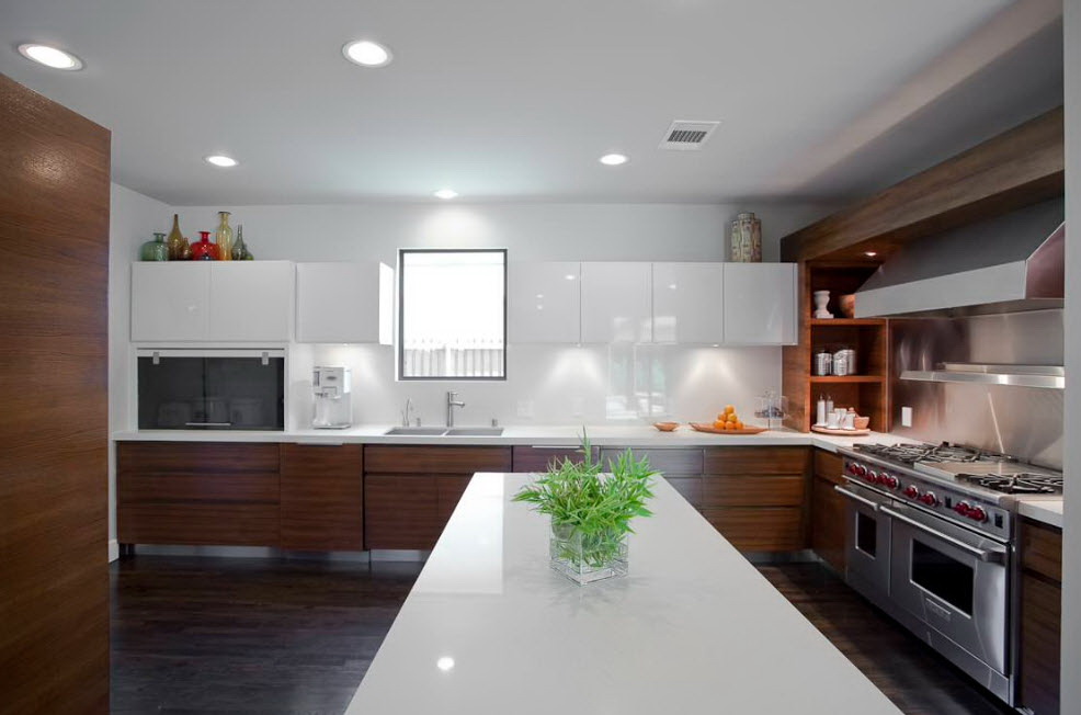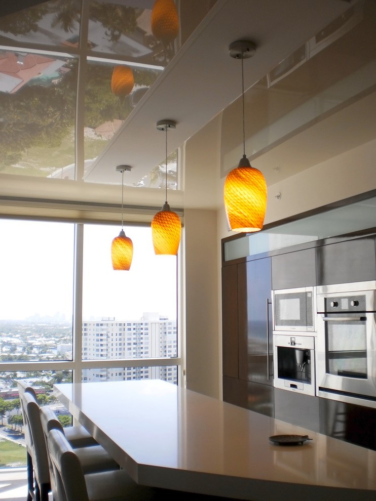 Cozinha o teto parece melhor de painéis com uma superfície brilhante. É mais fácil de limpar a fuligem gordurosa de um forno a gás, ao contrário dos painéis com relevo ou relevo profundos. A cor ou padrão pode ser escolhido para combinar com a cerâmica usada. telha, papel de parede ou cozinha de móveis.