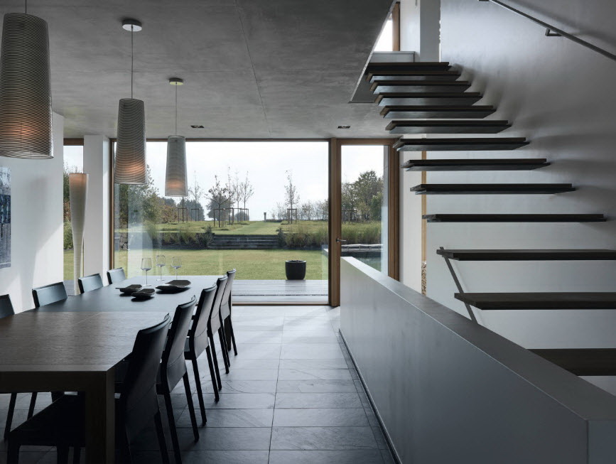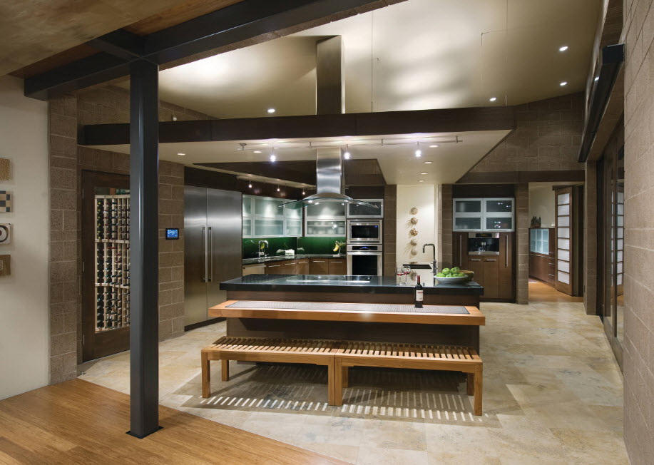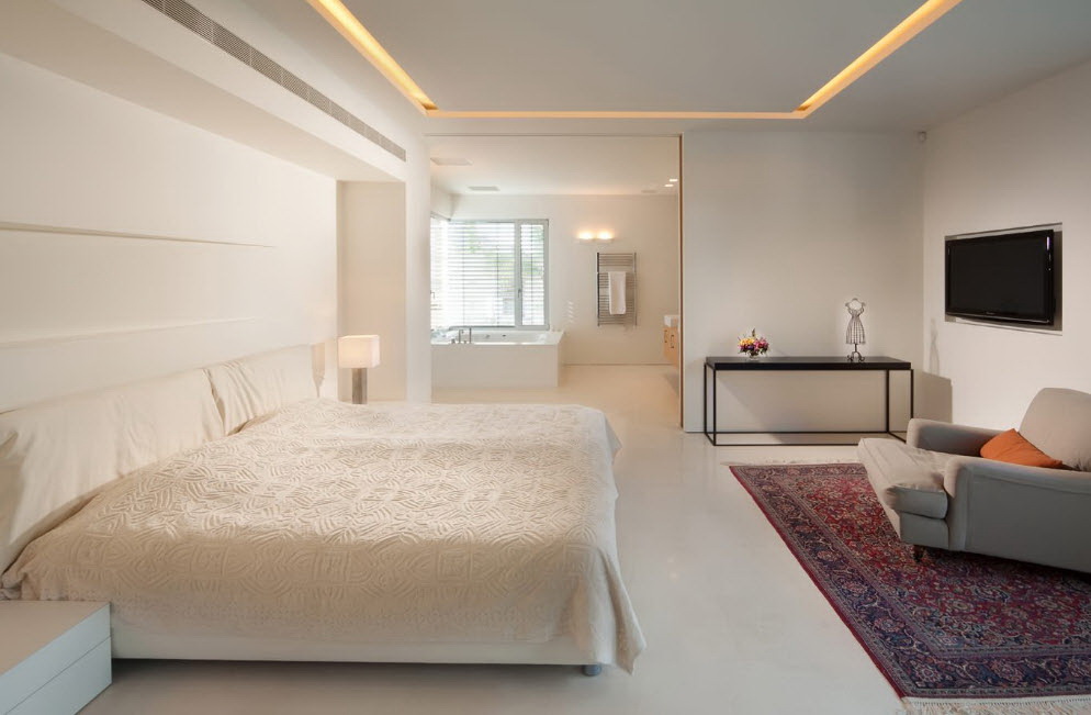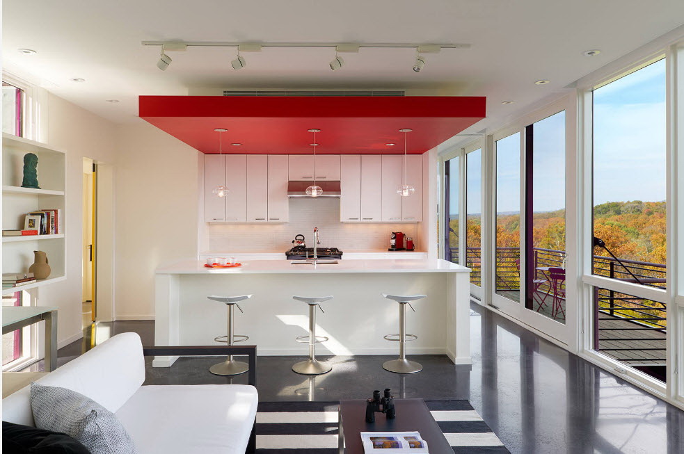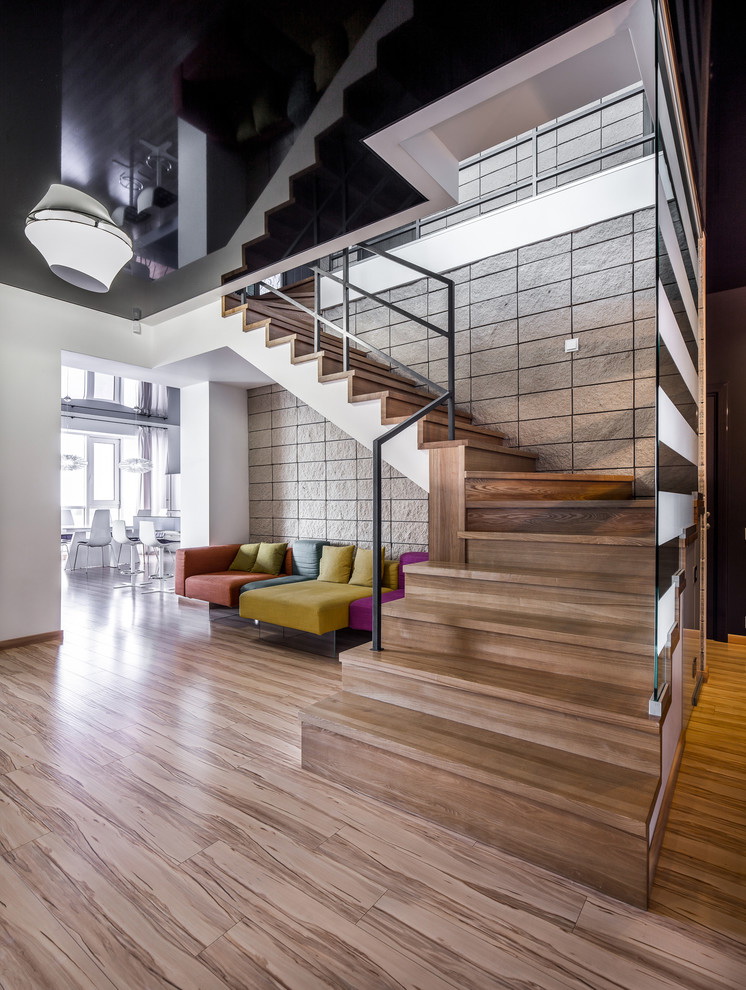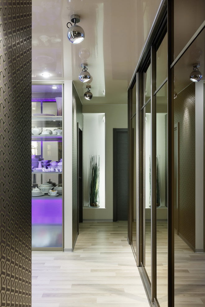 Tectos nos corredores também Corredores também muitas vezes aparar painéis de plástico. Em vez de um lâmpada sob a forma de candelabro, arandela ou teto, são utilizados vários projetores embutidos. O dispositivo do consolo da conexão individual permitirá alocar na sala zonas separadas ou espaços.