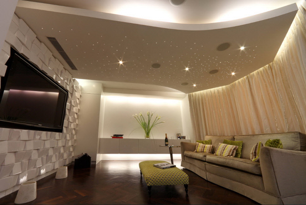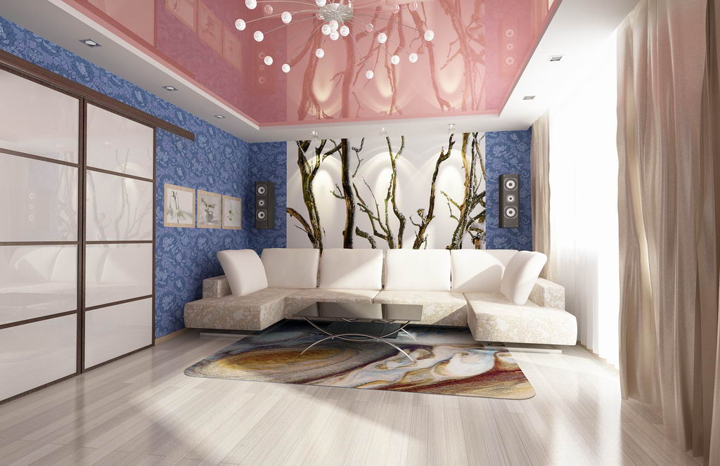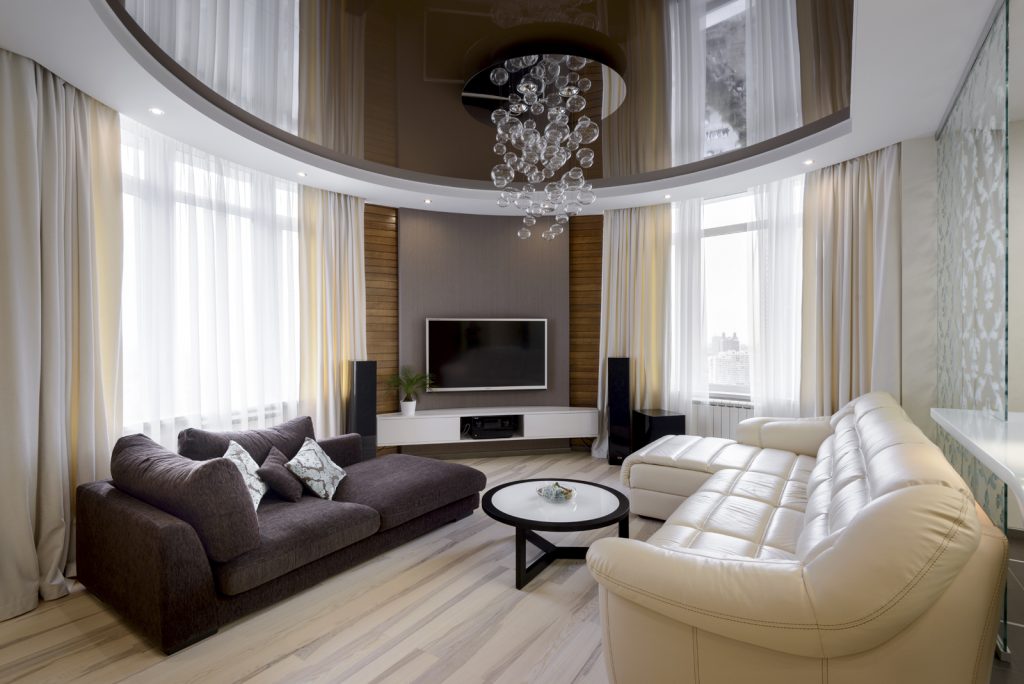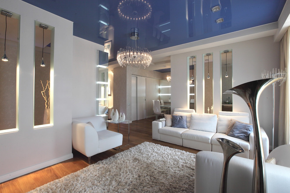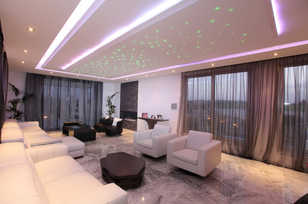 O teto na sala (310 + Foto): alta qualidade e moda. Apenas opções ganha-ganha