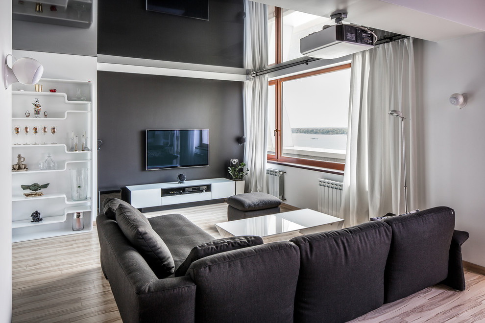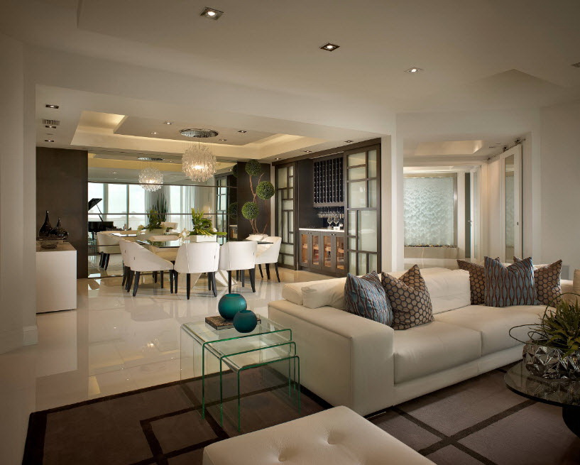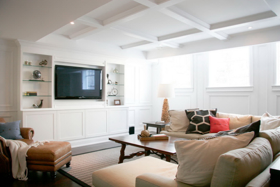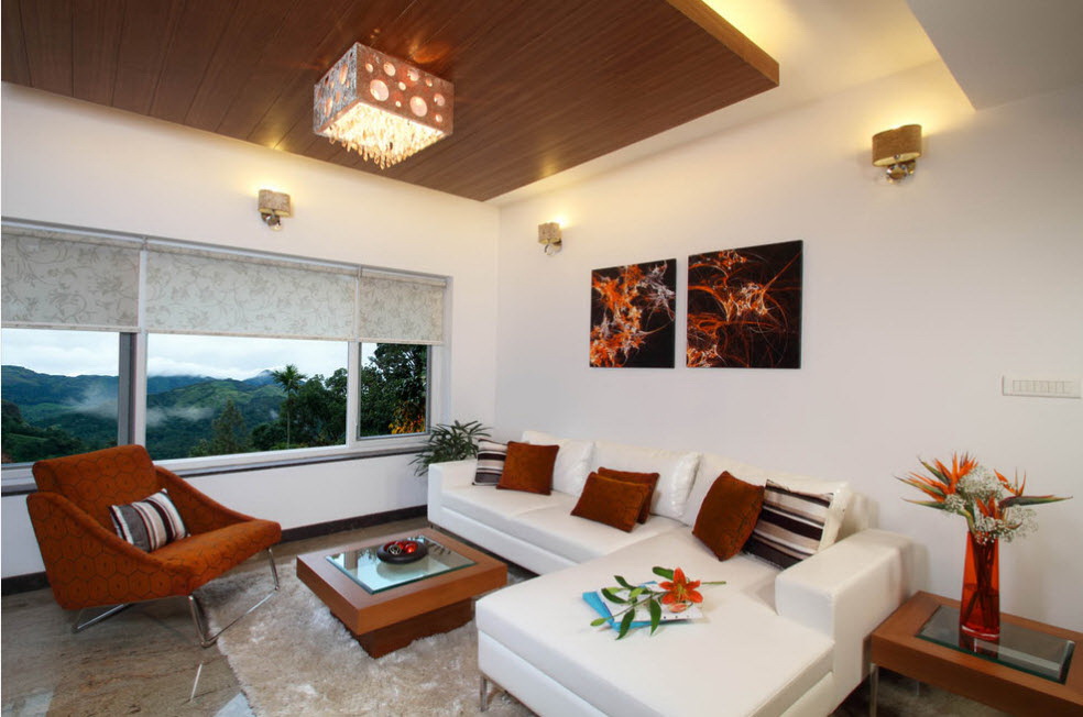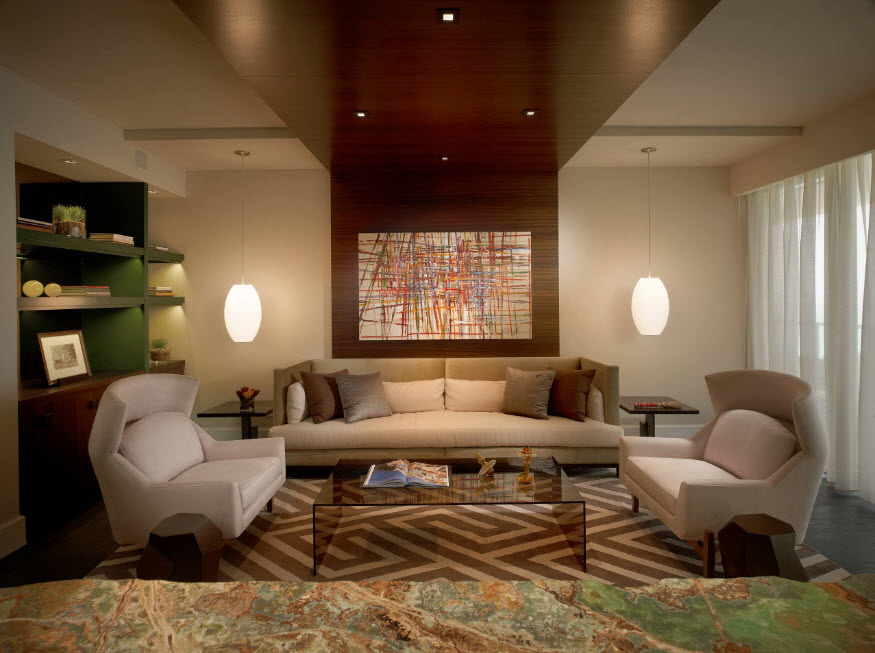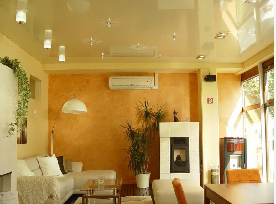 O teto na sala (310 + Foto): alta qualidade e moda. Apenas opções ganha-ganha