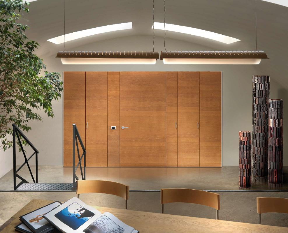 - Dobradiças. Em primeiro lugar, eles devem ser calculados com base no peso de uma porta específica e, em segundo lugar, é bom se eles estiverem ocultos (a menos, é claro, que na sua ideia eles não atuem como um elemento decorativo). Assim, a porta será mais difícil de remover das dobradiças, e haverá menos elementos que possam afetar a impressão geral.