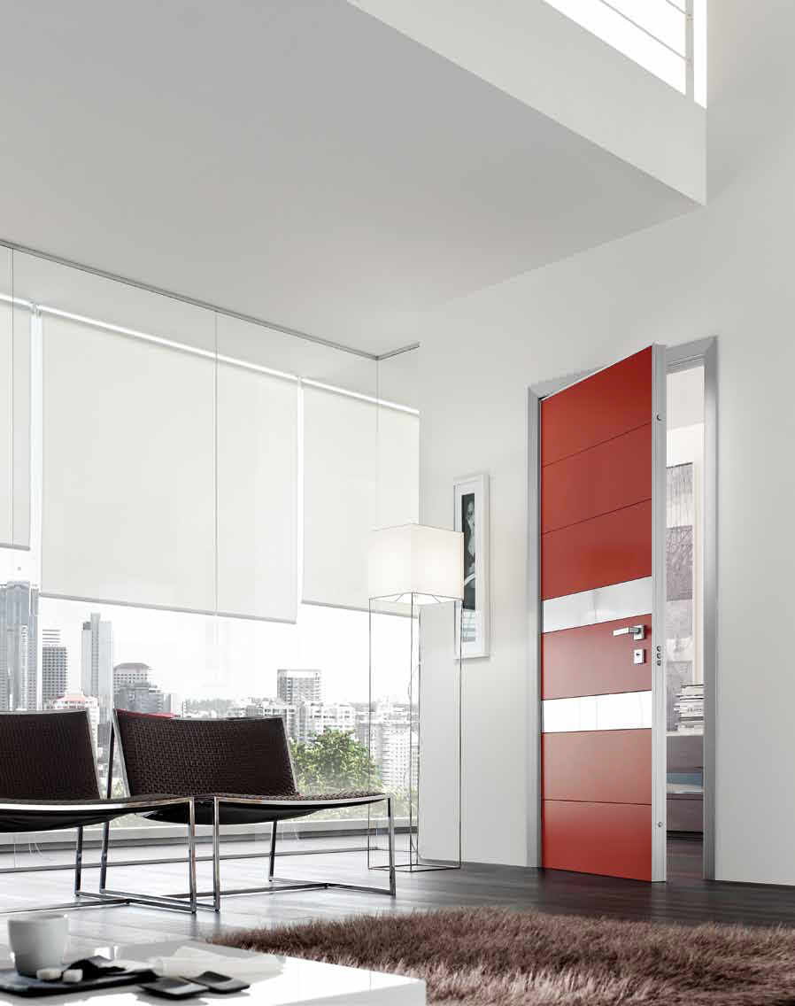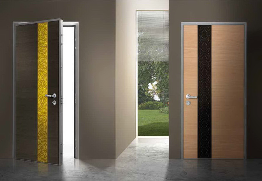 Além da presença e ausência de inserções de vidro, a forma e a cor da porta também são importantes.