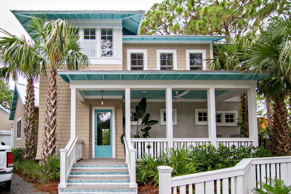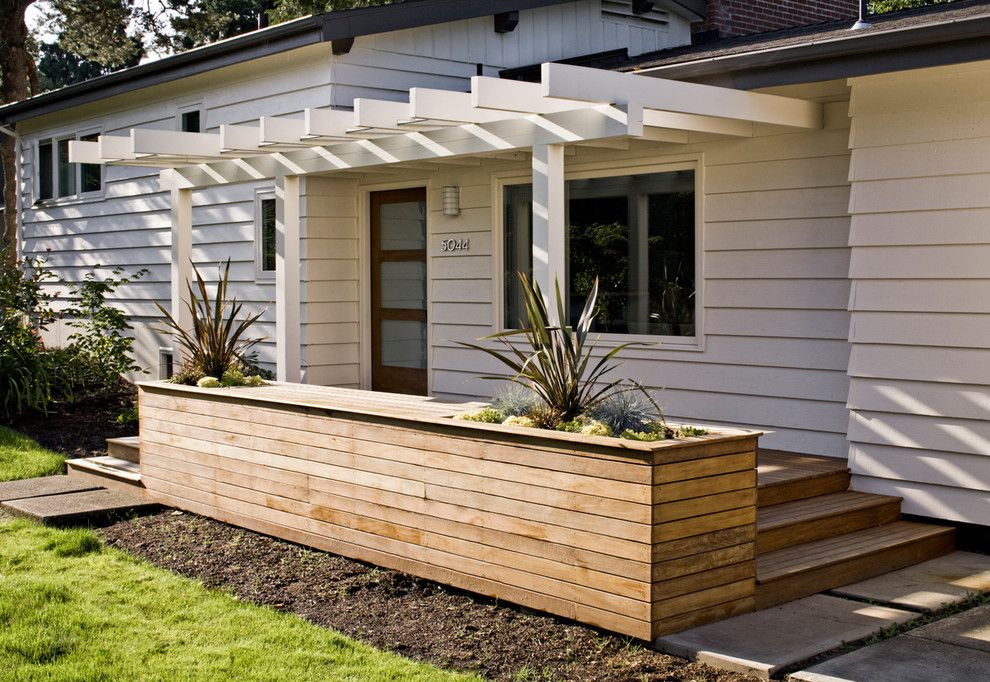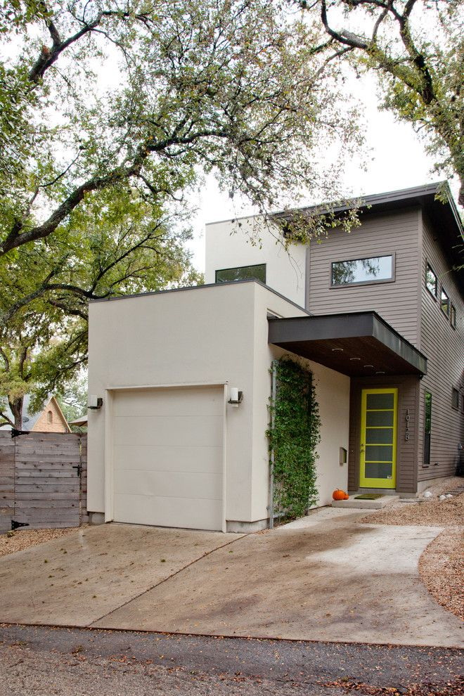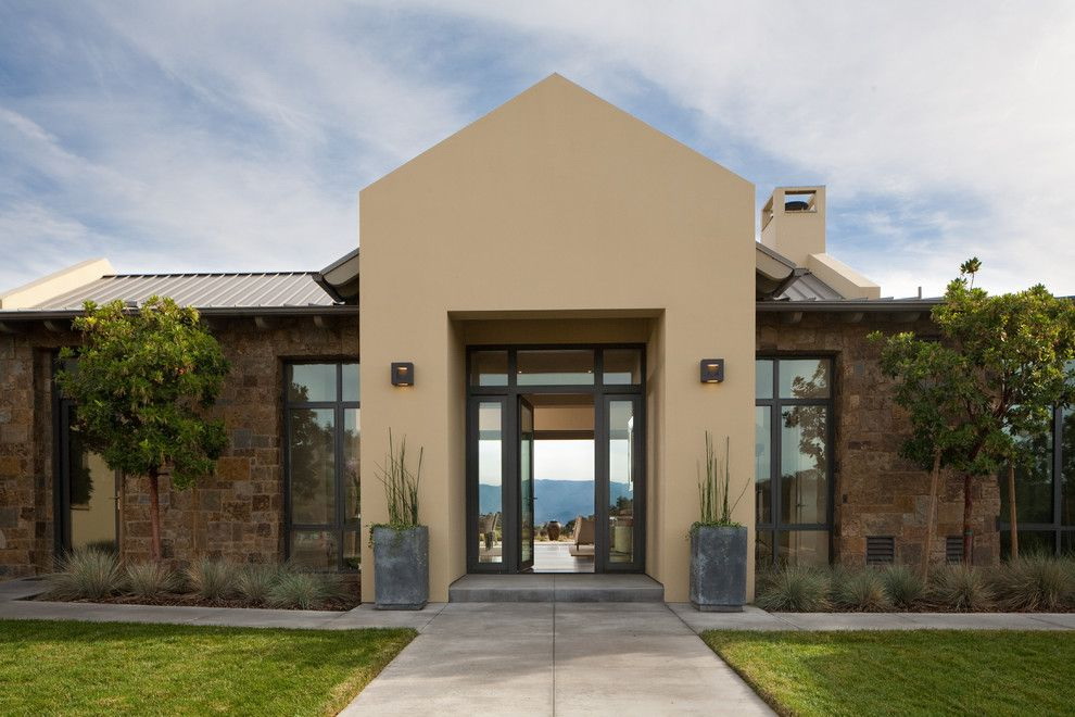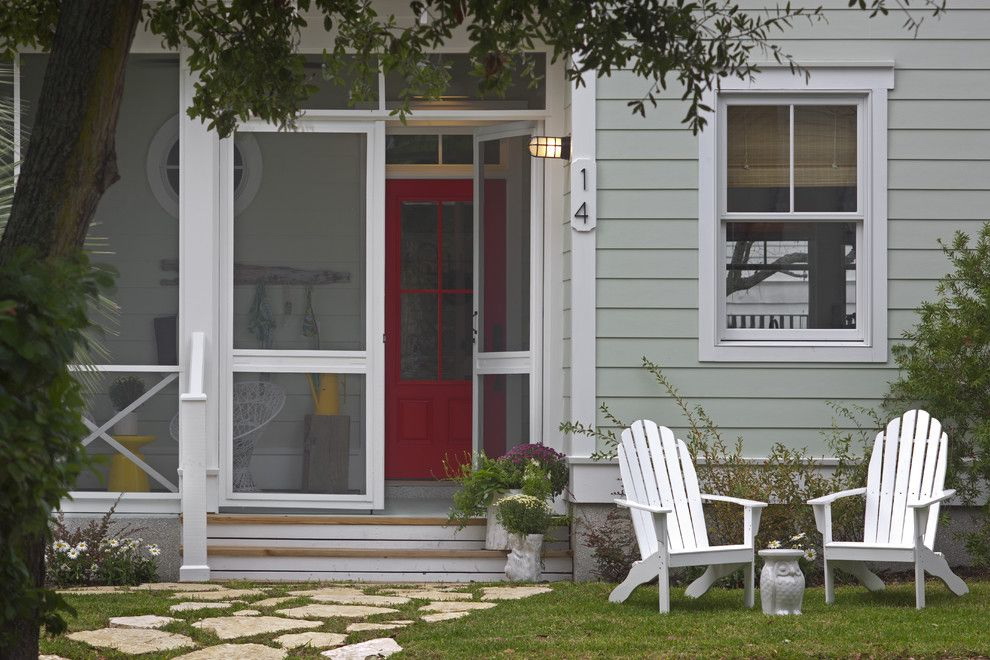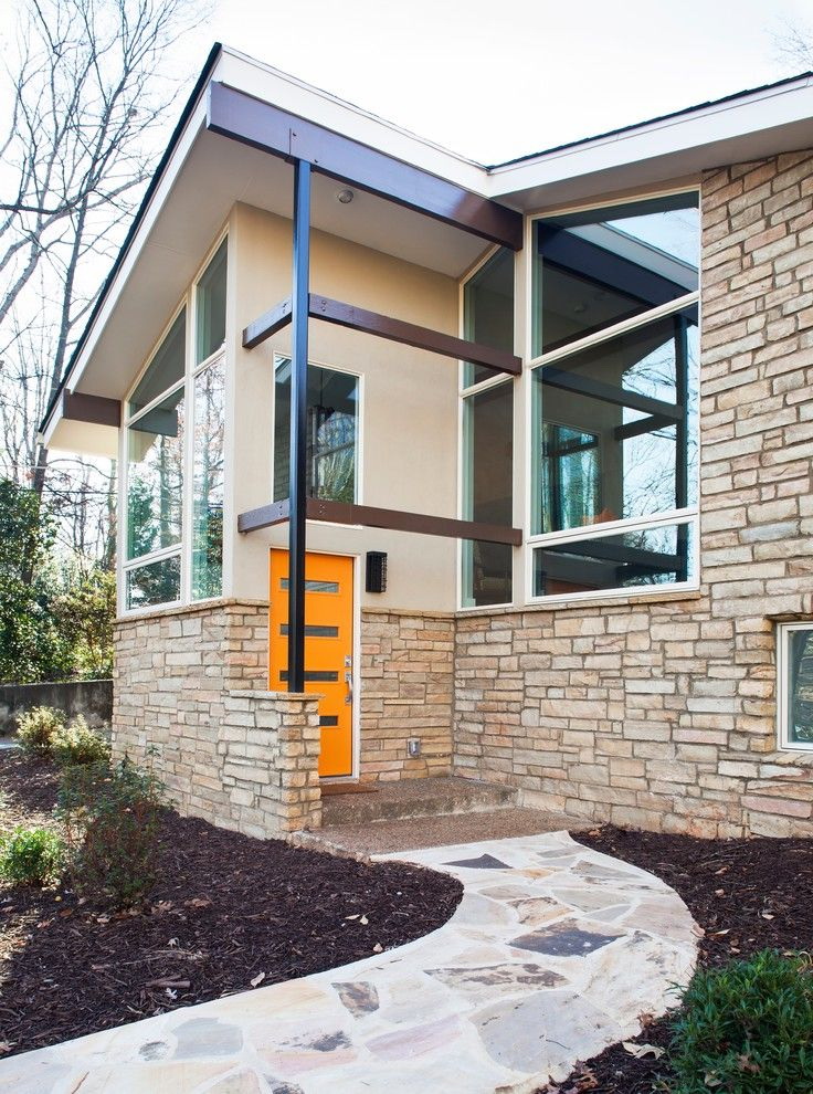 Normalmente, a porta é feita para se ajustar ao resto do estilo - as mesmas linhas das janelas, um tom da mesma cor das paredes. Mas às vezes você pode fazer um contraste, se você tem algo para combinar (por exemplo, com um telhado).