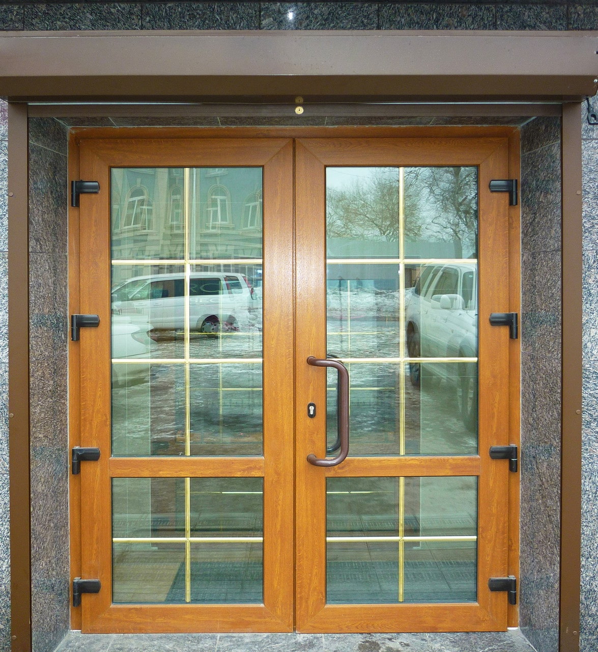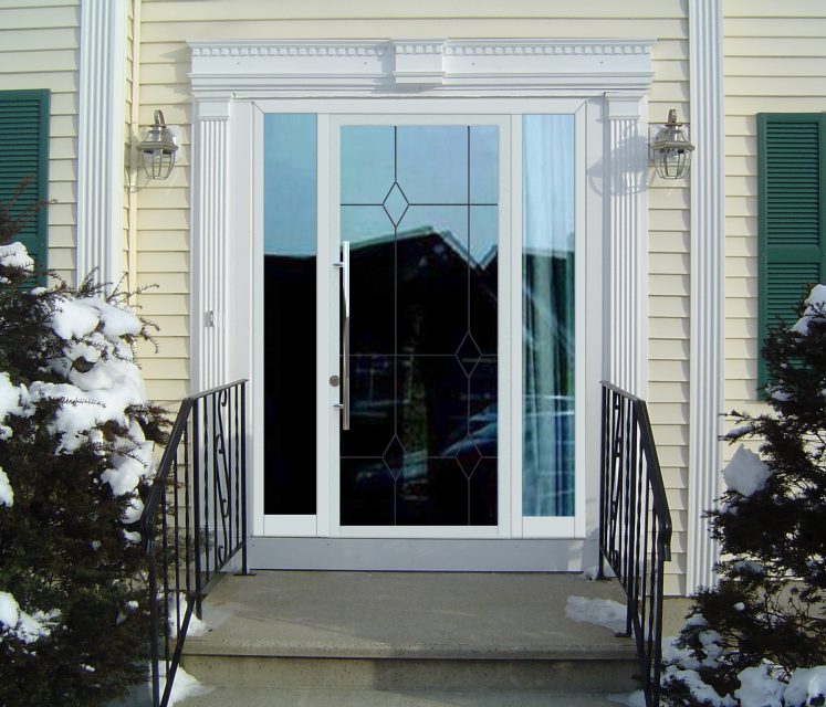 - folha da porta - geralmente consiste de uma camada de plástico e uma camada de metal, muitas vezes complementada por uma janela de vidro duplo, o que lhe confere uma aparência mais elegante e isolamento, o que aumenta o desempenho do isolamento térmico;