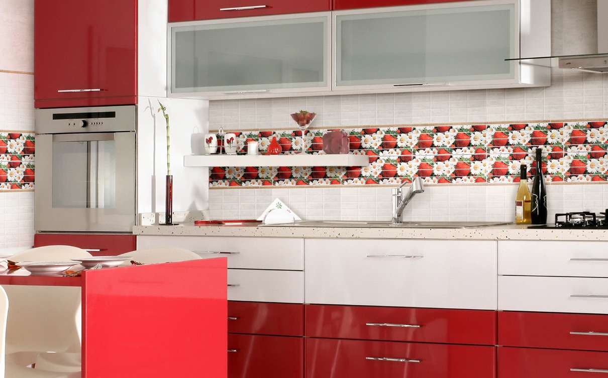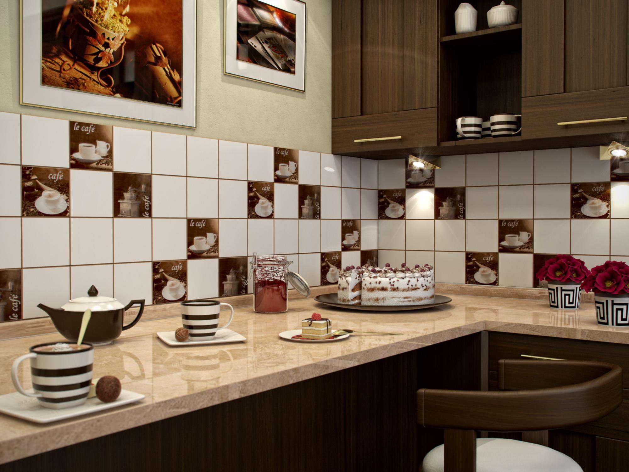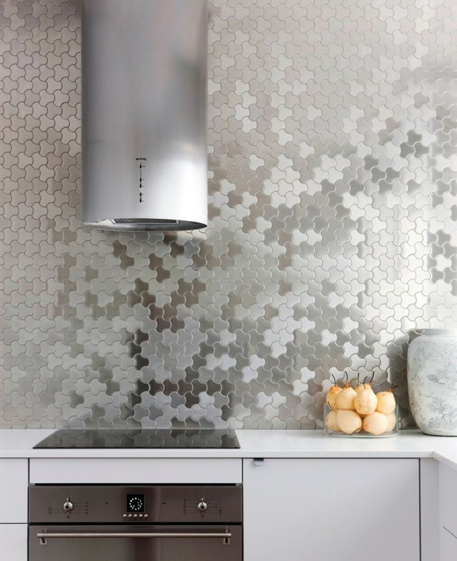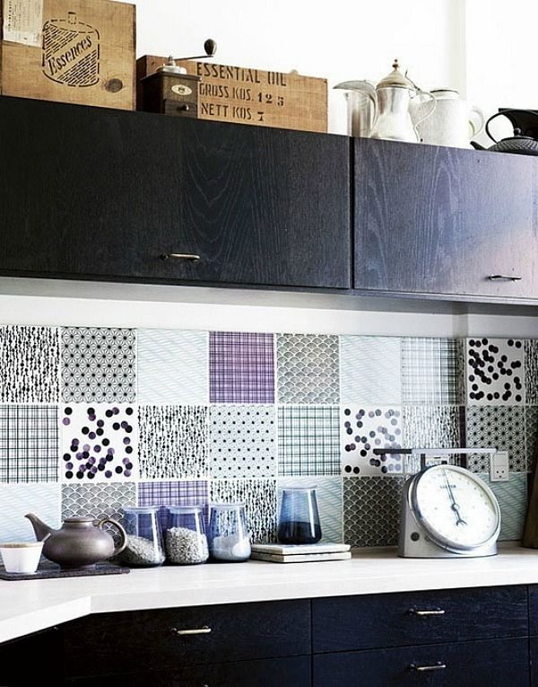 Moderna execução da telha usada para um avental de vários: a partir de uma paleta de tons de cores, uma superfície impressionante, uma decoração para produtos com uma impressão de fotos. Isso dá muita imaginação para designers.