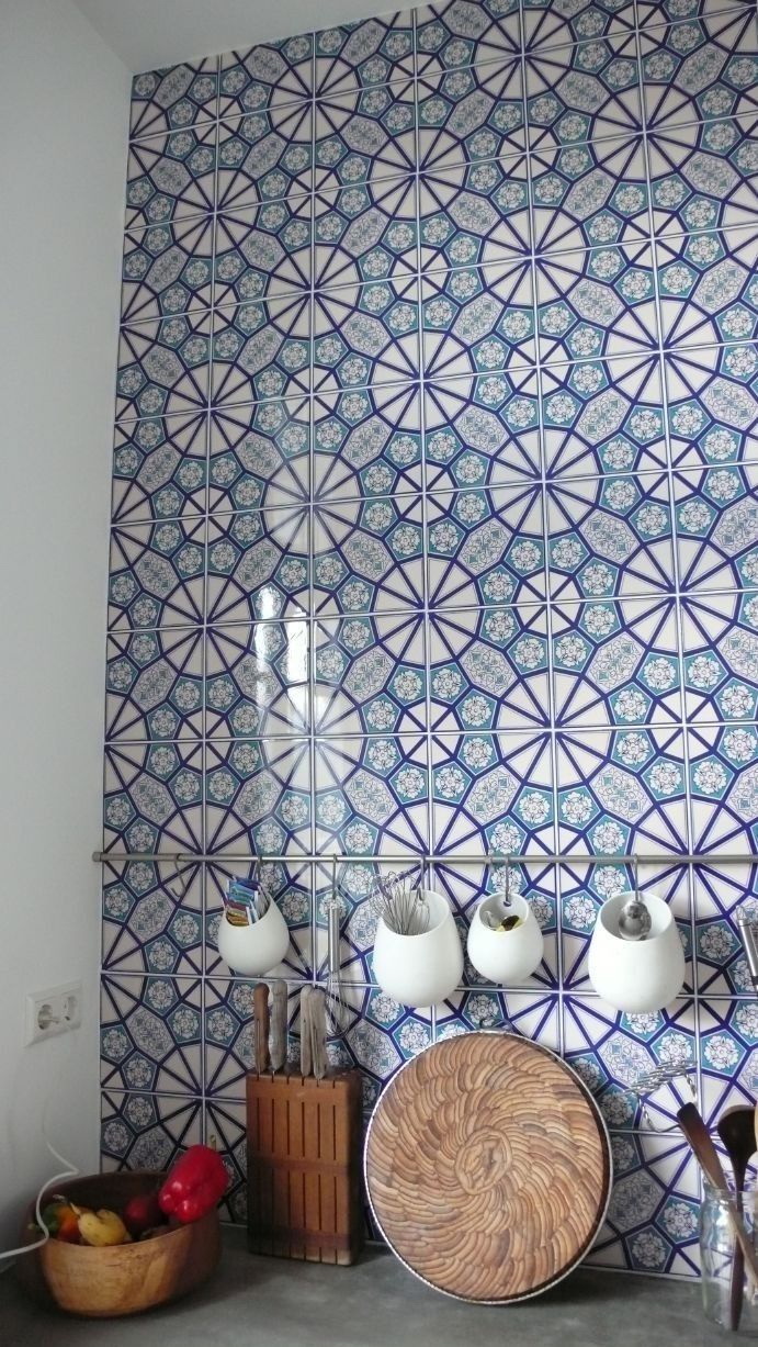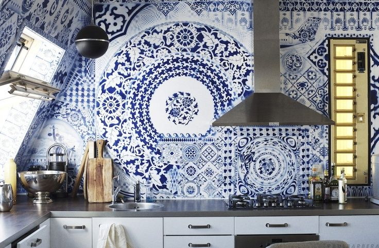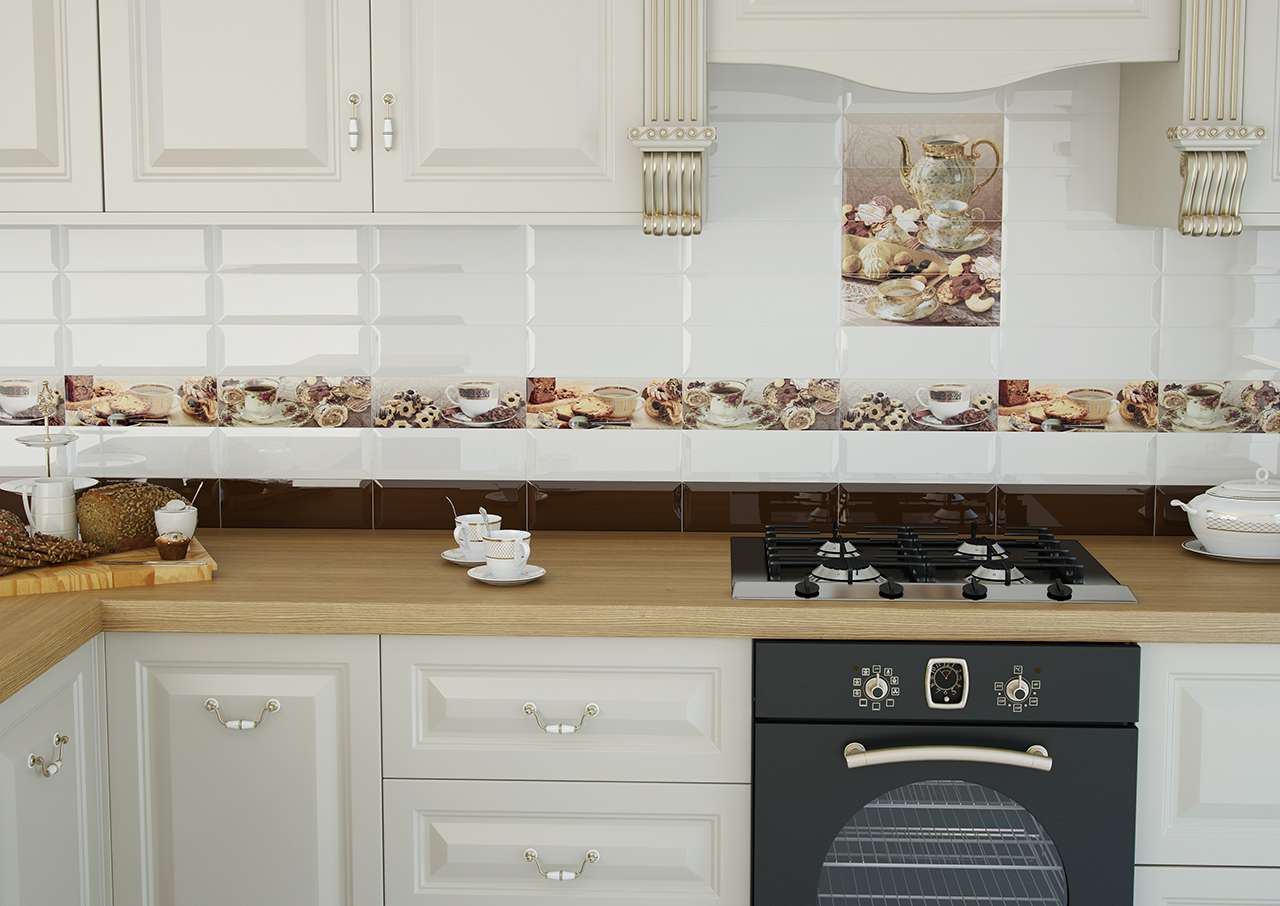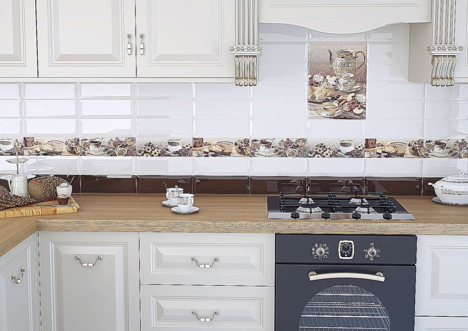 Moderna execução da telha usada para um avental de vários: a partir de uma paleta de tons de cores, uma superfície impressionante, uma decoração para produtos com uma impressão de fotos. Isso dá muita imaginação para designers.