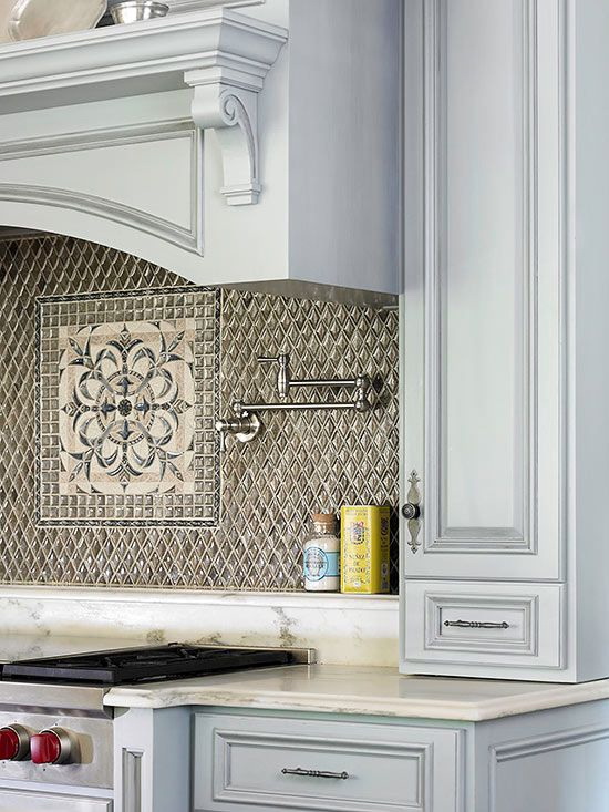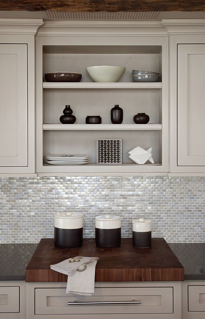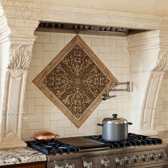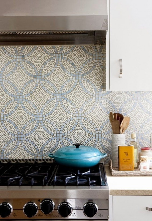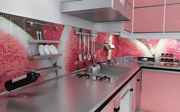 O avental, feito de mosaico, parece espetacular, com mobília maciça e cara. Este material de revestimento é muitas vezes feito à mão.