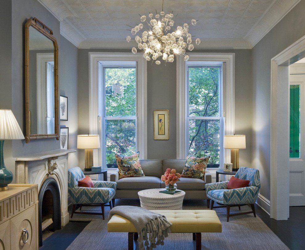 A escolha da luminária dependerá do design da sala e sua finalidade. Pode haver várias lâmpadas de cristal para iluminar não apenas o centro da sala de estar, mas também certas áreas. Pode ser localizado no centro ou acima da área de refeições. Você pode colocar várias lâmpadas localizadas nas proximidades.