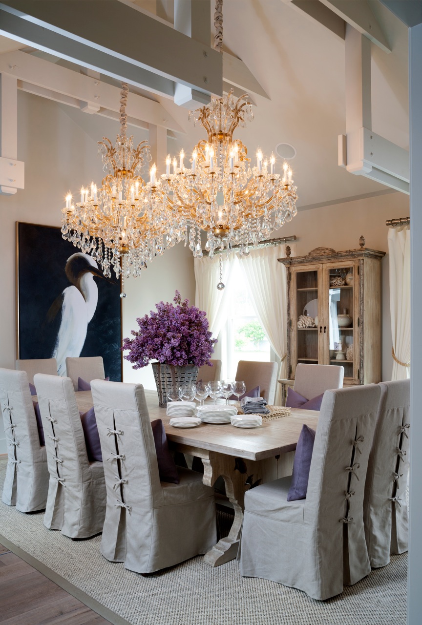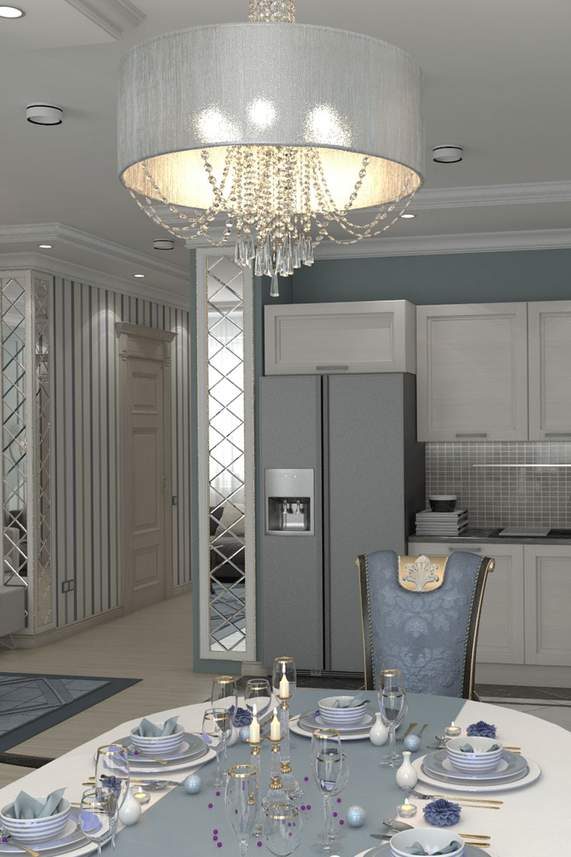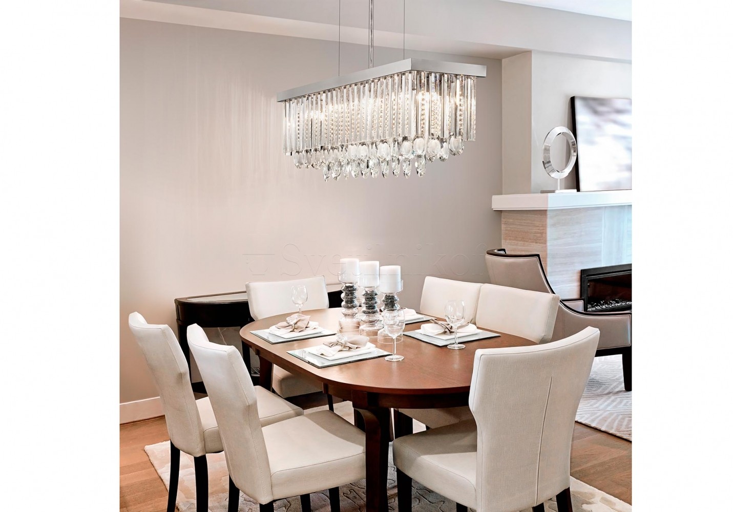 Como regra, o cristal é usado na sala de jantar, mas isso não significa que tal lustre não possa ser transmitido em outras salas.
