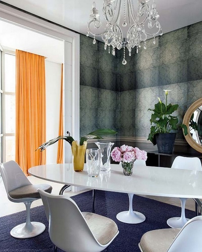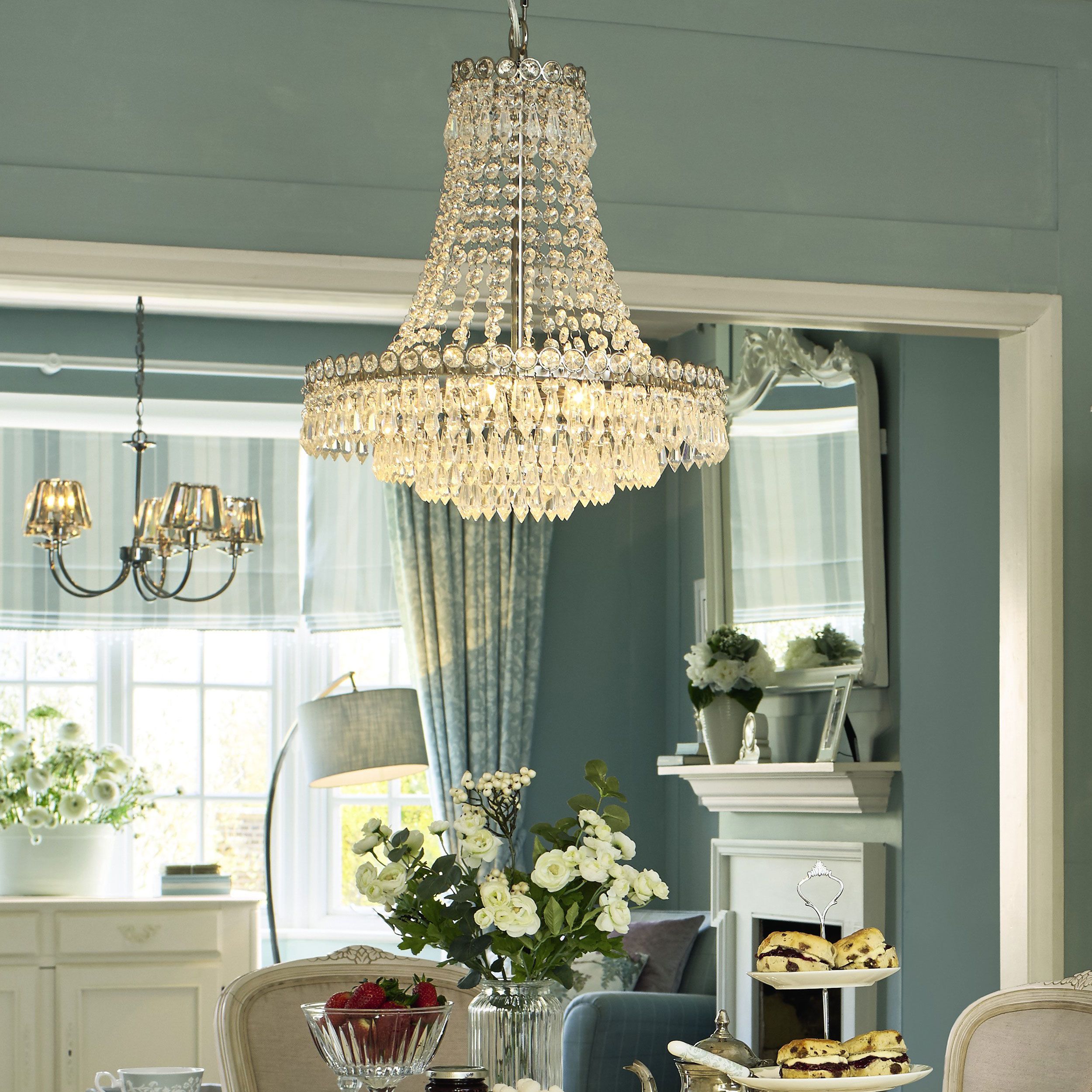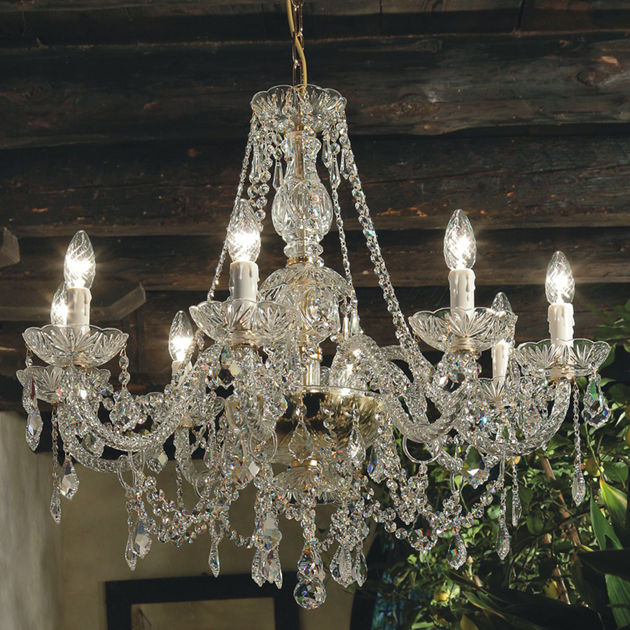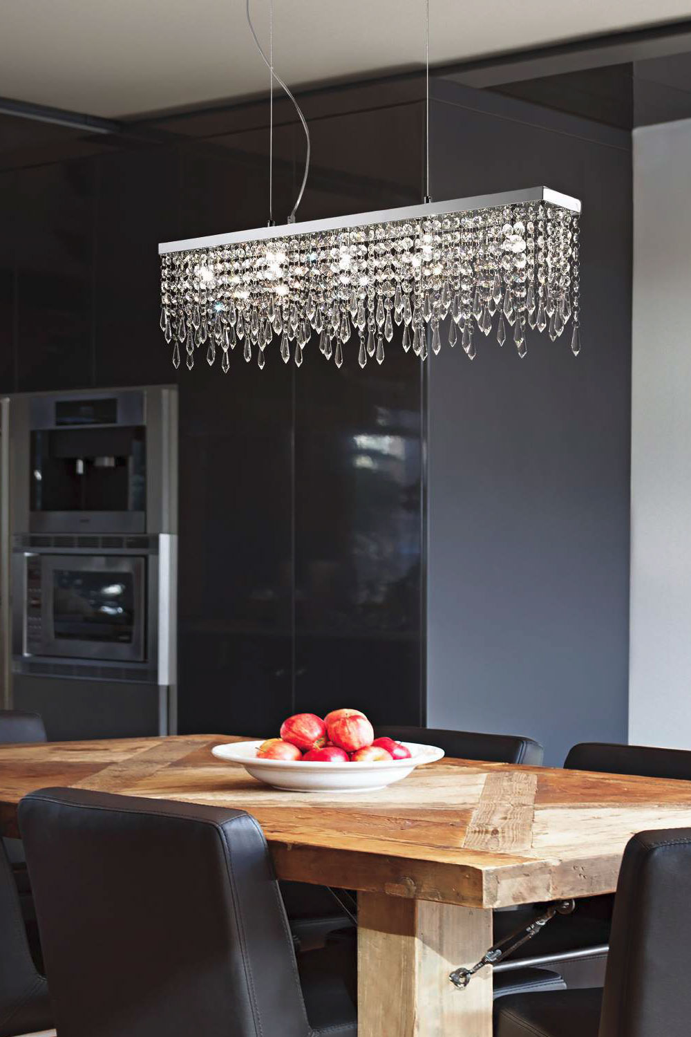Como regra, o cristal é usado na sala de jantar, mas isso não significa que tal lustre não possa ser transmitido em outras salas.