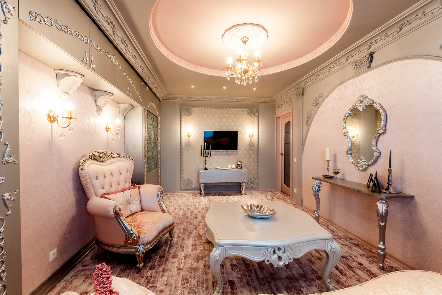 - Glamour. Esse estilo envolve luxo demonstrativo. O interior em si pode ser criado em um estilo clássico, mas para criar esse glamour, adicione elementos tradicionalmente considerados caros. Estes incluem: espelhos, mármore, seda, veludo, ouro e cristal.