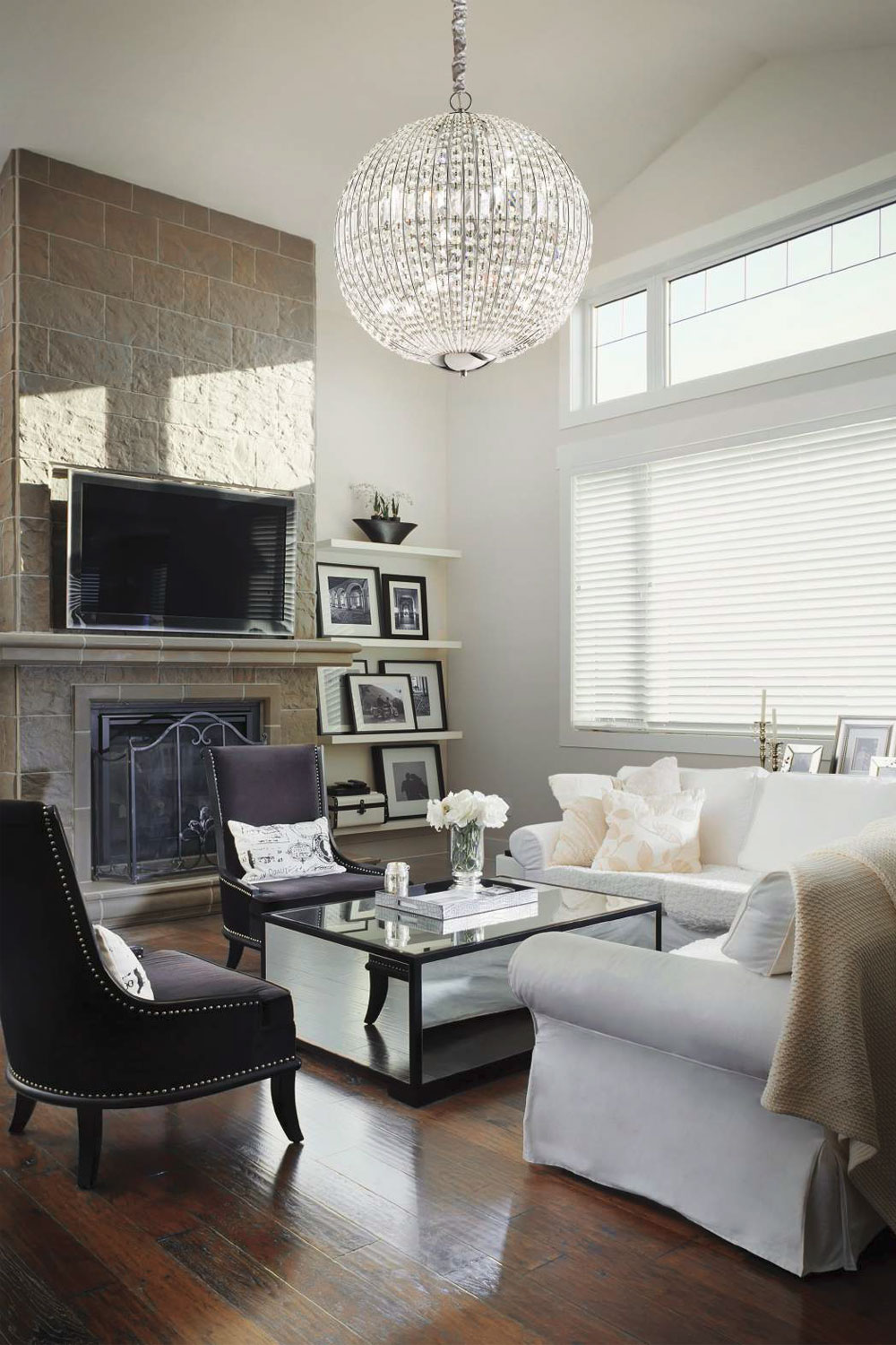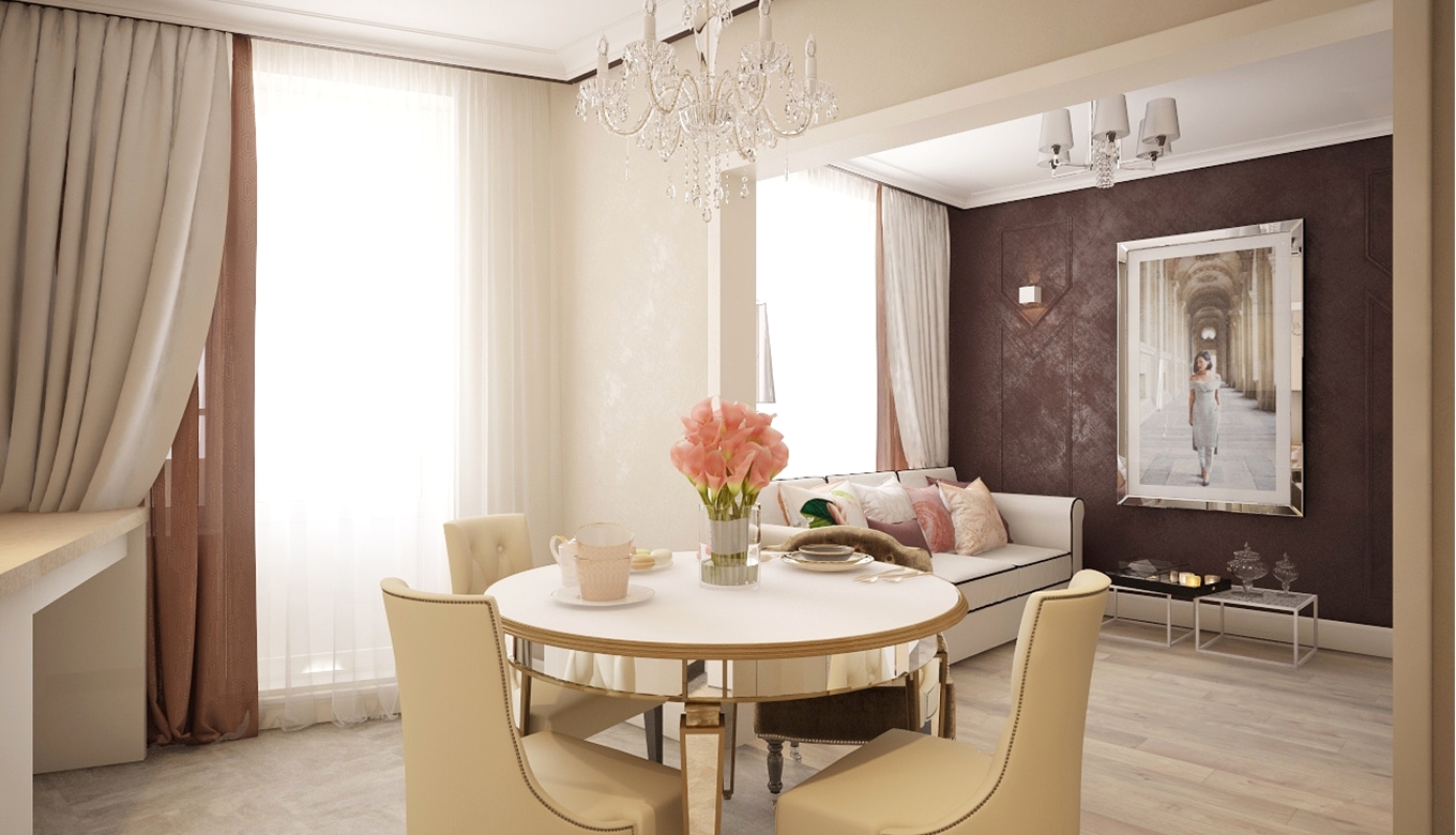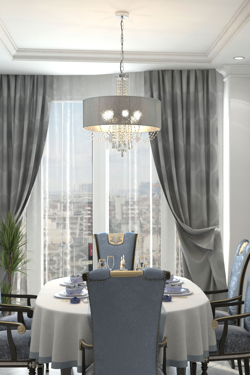 Em cada família, a sala de estar pode desempenhar diferentes funções, às vezes várias. Este é um lugar para relaxar, assistir filmes, conversar, as crianças podem brincar aqui. Às vezes, na sala de estar, a área de trabalho é ocupada, mas com mais frequência toda a família, às vezes os amigos se reúnem para comemorar. A área de jantar pode ser distinguida por uma luminária com pingentes, que é feita de cristal, se colocado sobre a mesa. Isso também ajudará a adicionar conforto ao quarto.
