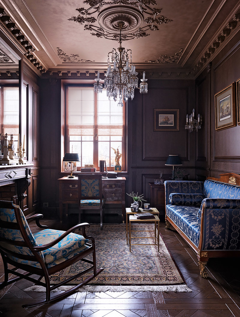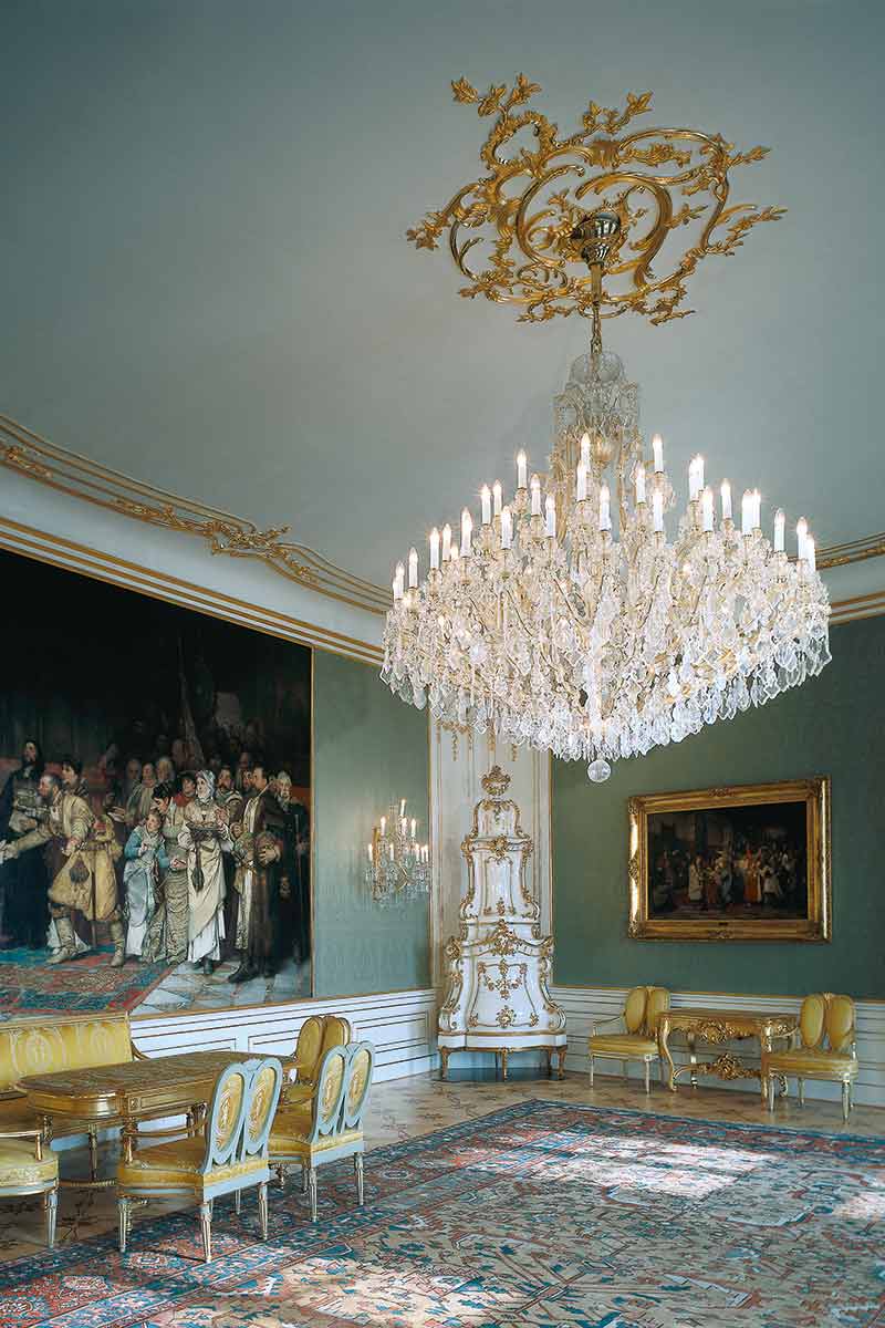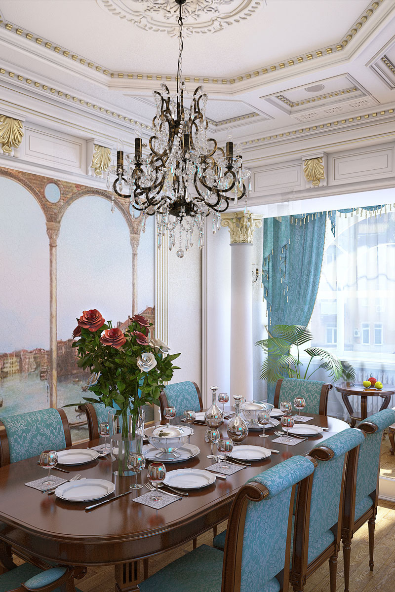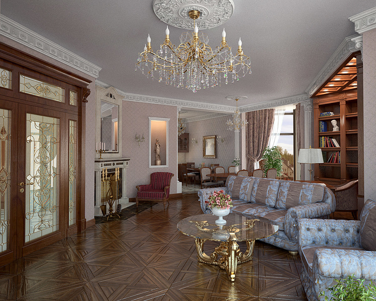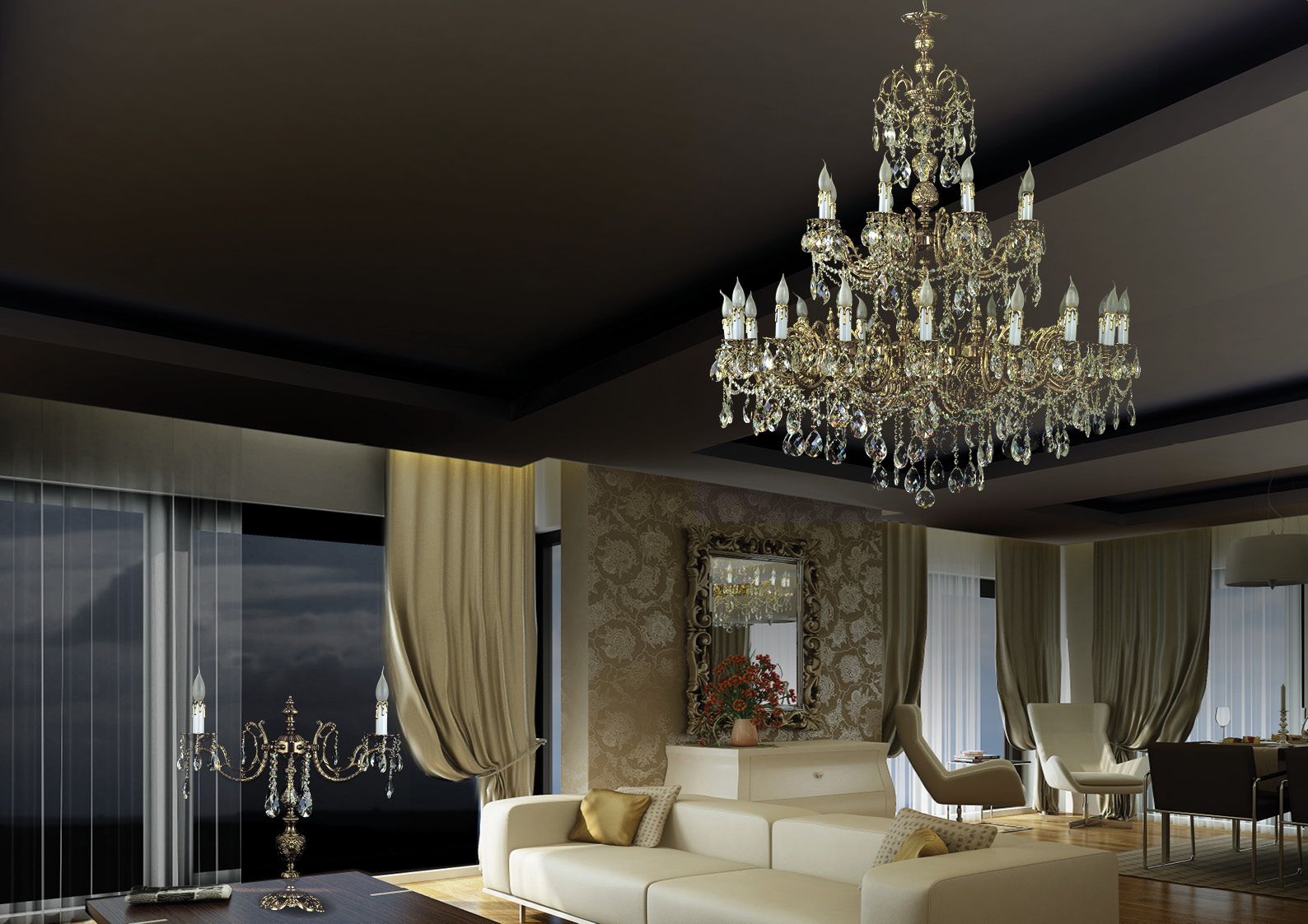 As lâmpadas clássicas ajudam a criar uma atmosfera especial de solenidade. Tais candelabros, por exemplo, parecerão ridículos em salas pequenas, porque eles precisam de muito espaço e da presença de tetos altos.