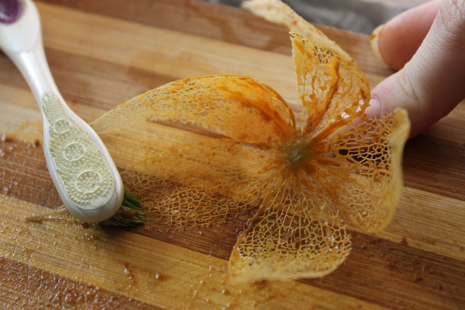 Em geral, a esqueletização refere-se à remoção da camada superior, e é por isso que elas se tornam transparentes, enquanto a estrutura, como sua integridade, não é perturbada. Tudo isso parece pelo menos original e incomum.
