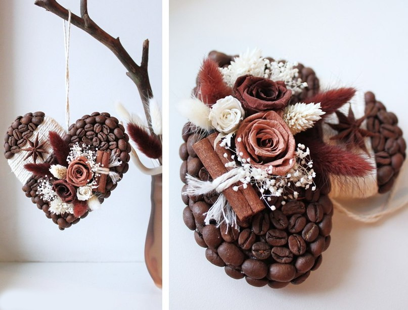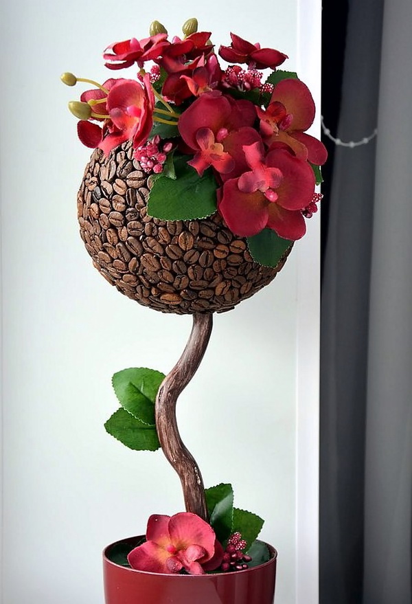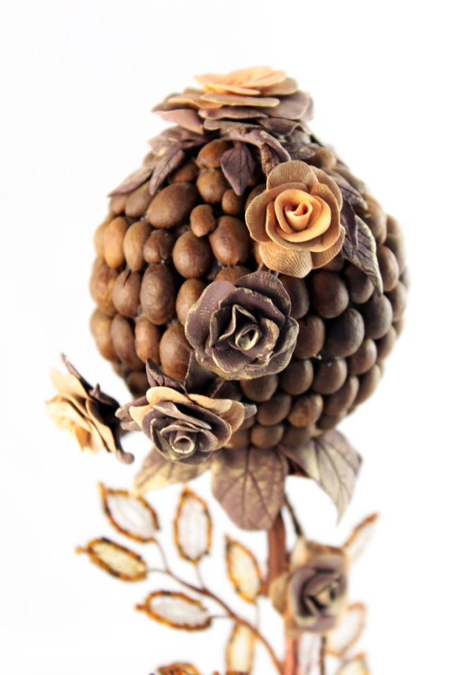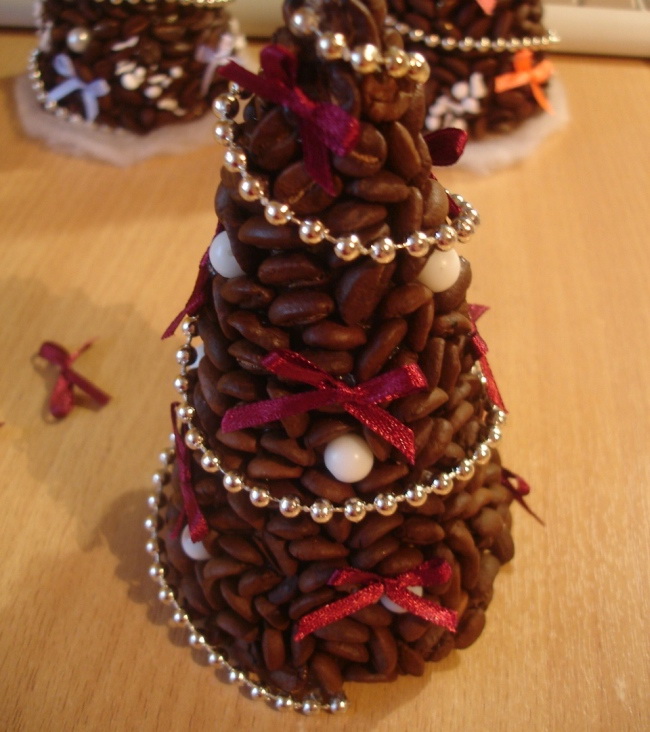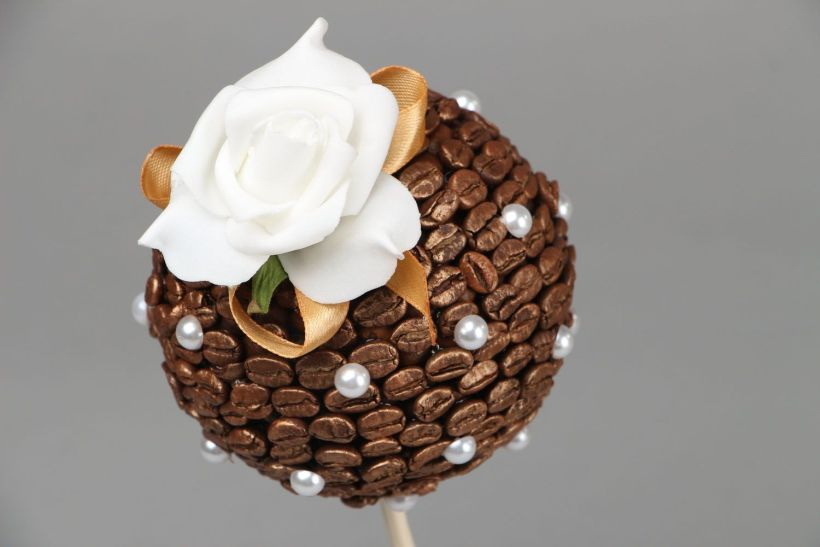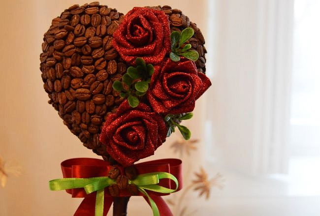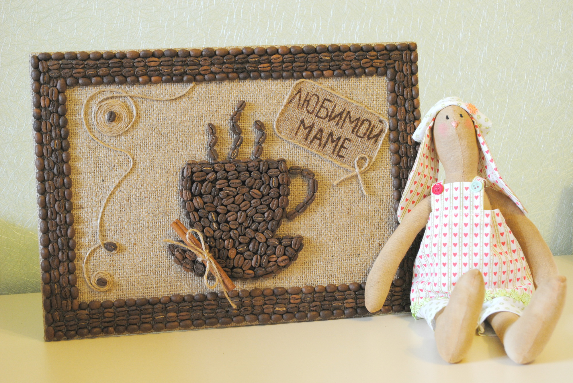 Este tipo de artesanato é mais adequado para adultos, porque entre eles há também um amador para fazer algo com as próprias mãos. Uma característica distintiva de tais lembranças - o aroma que vem dos grãos de café, é armazenado por um longo tempo. O artesanato será uma ótima idéia para um amante de café, você pode fazer isso por si mesmo.
