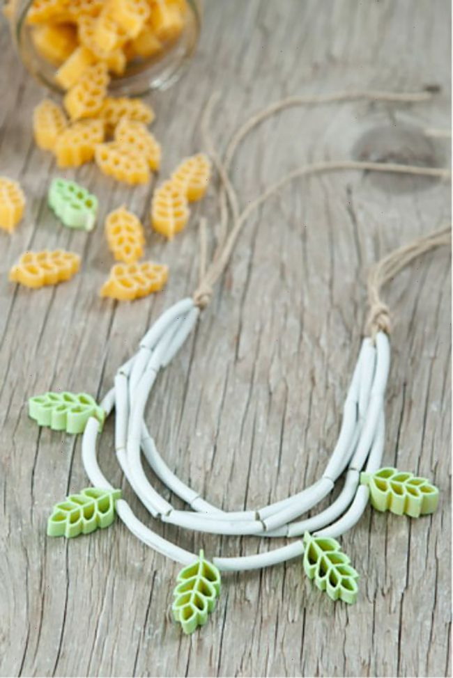 Você pode fazer contas e pulseiras, combinando macarrão com contas comuns. Você pode organizar não apenas uma coisa, mas todo o conjunto, complementando-o com um grampo no mesmo estilo. Tais conjuntos de "jóias" parecem elegantes e originais.