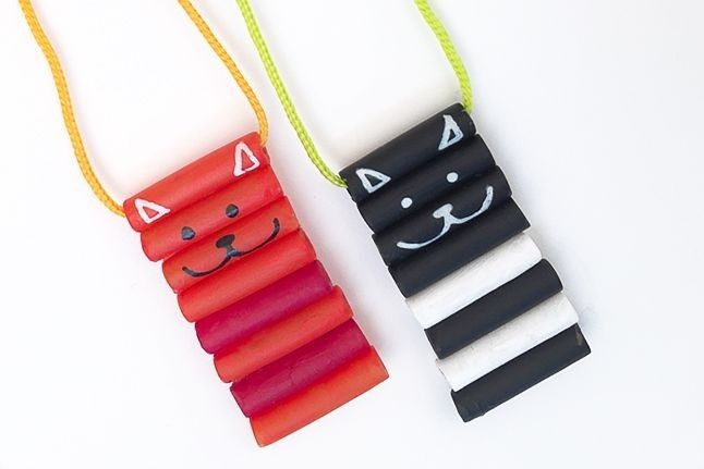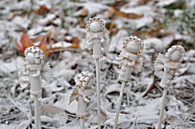 Se você escolheu um padrão de cachorrinho, por que não adicioná-lo a uma coleira com um “distintivo” - macarrão na forma de uma roda, ou porque não usá-los para um botão de boneco de neve.